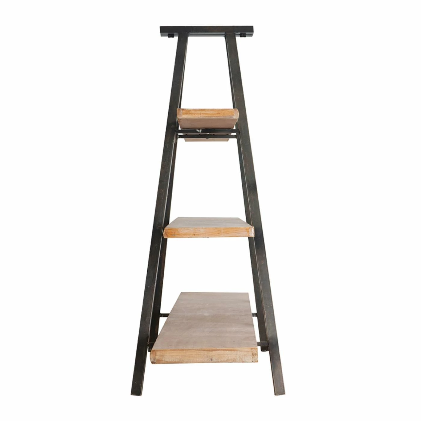 A stylish solution for all your storage needs, the A and B Home Ramsden Tripod Bookcase β Black features a three tiered design crafted from iron and fir wood. The natural brown color of the wood complements the black finish on the iron, giving this bookcase a modern industrial feel.