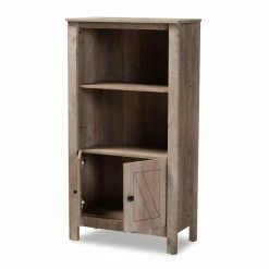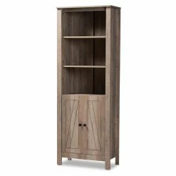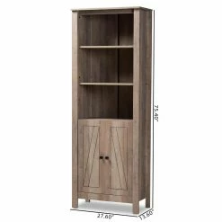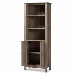 Crisp lines create a sleek silhouette in the stunning Baxton Studio Derek Transitional Decorative Bookcase with Doors – Natural Oak. Made in Malaysia, the Derek is constructed from sturdy wood showcasing a natural oak finish. The external shelves provide an excellent display for books or decorations, while the internal shelves supply concealed storage space. Requiring assembly, the doors feature an exquisitely carved design, as well as black finished square metal knobs for added visual appeal. A stylish way to organize and display collections, the Derek bookcase is an excellent addition to any space.