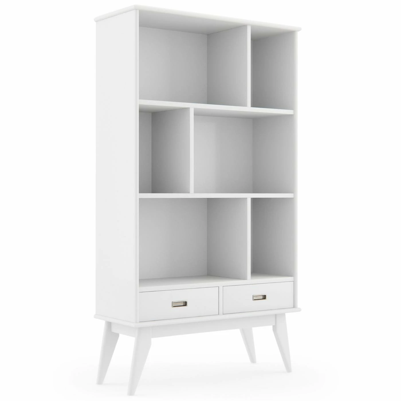Display your favorite books and keepsakes in the Brooklyn & Max Baxter Mid-Century Modern Cube Bookcase – White. This piece is crafted from solid hardwood and combines a mid-century modern design with function. The bookcase features 6 shelves and 2 drawers providing the ultimate solution for all your storage needs. Tapered legs and a white painted finish delivers a clean lined, contemporary feel to your living room, family room or home office.