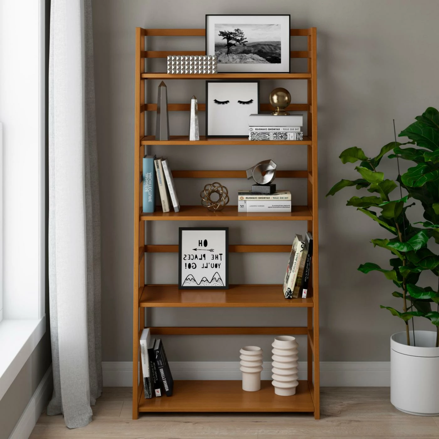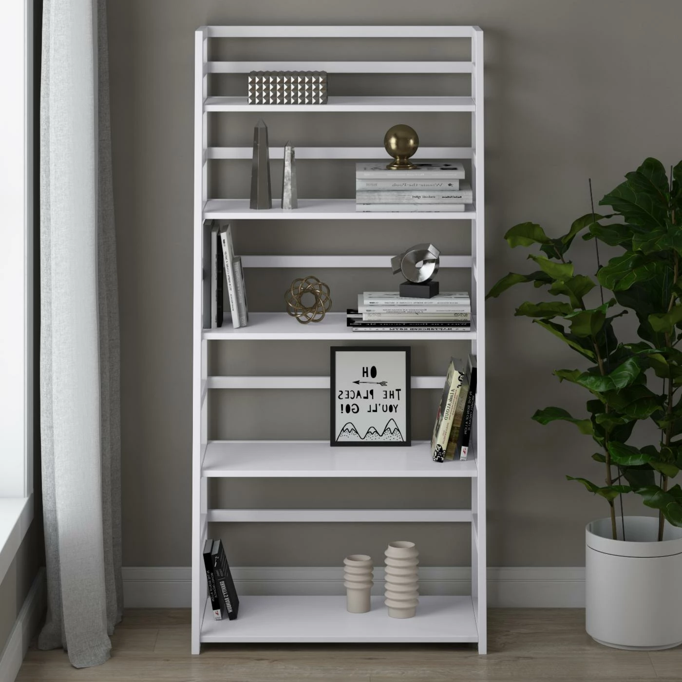 Create a light and contemporary feel to your home with the Brooklyn & Max Brunswick Contemporary Ladder Bookcase. This unit is easy to assemble and is made of pine wood. With its four shelves, this ladder shelf is designed to have flexible storage for books, curios, accessories, sculptures or decorative accents. Buy one or more depending on what you need to store and the space you have. The bookshelf is ideal for living rooms, offices, bedrooms, hallways and family rooms.