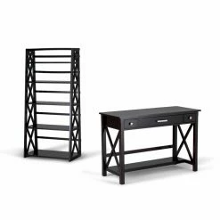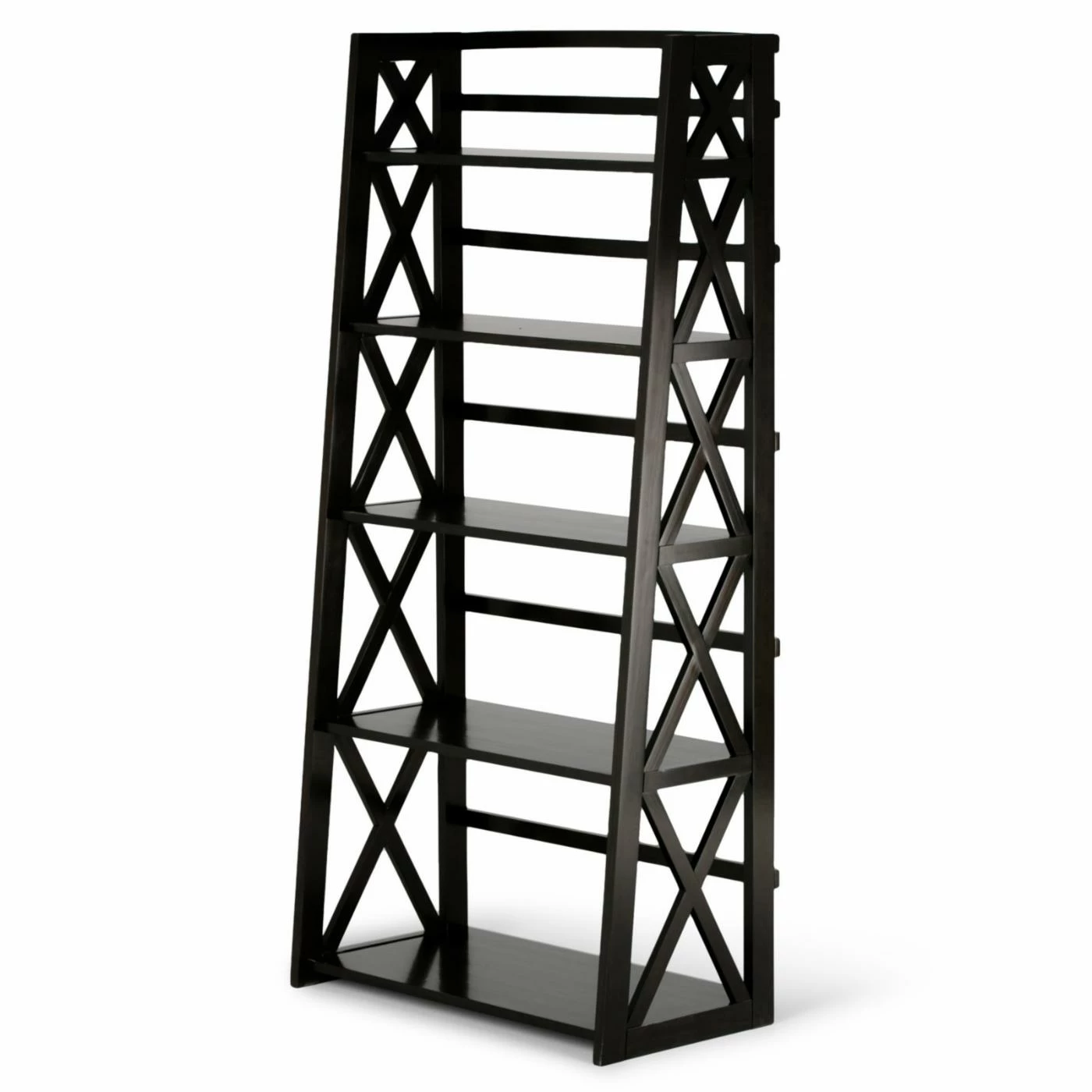 Experience the difference the Brooklyn + Max Providence Contemporary Ladder Bookshelf – Dark Walnut Brown can make. This solid pine ladder bookshelf offers a unique geometric appeal. Select from the available stains for an effortless go-together for most interiors. Try ordering multiples to create a complete wall storage system. Five shelves handle books, photos, curios, ceramics, and more.