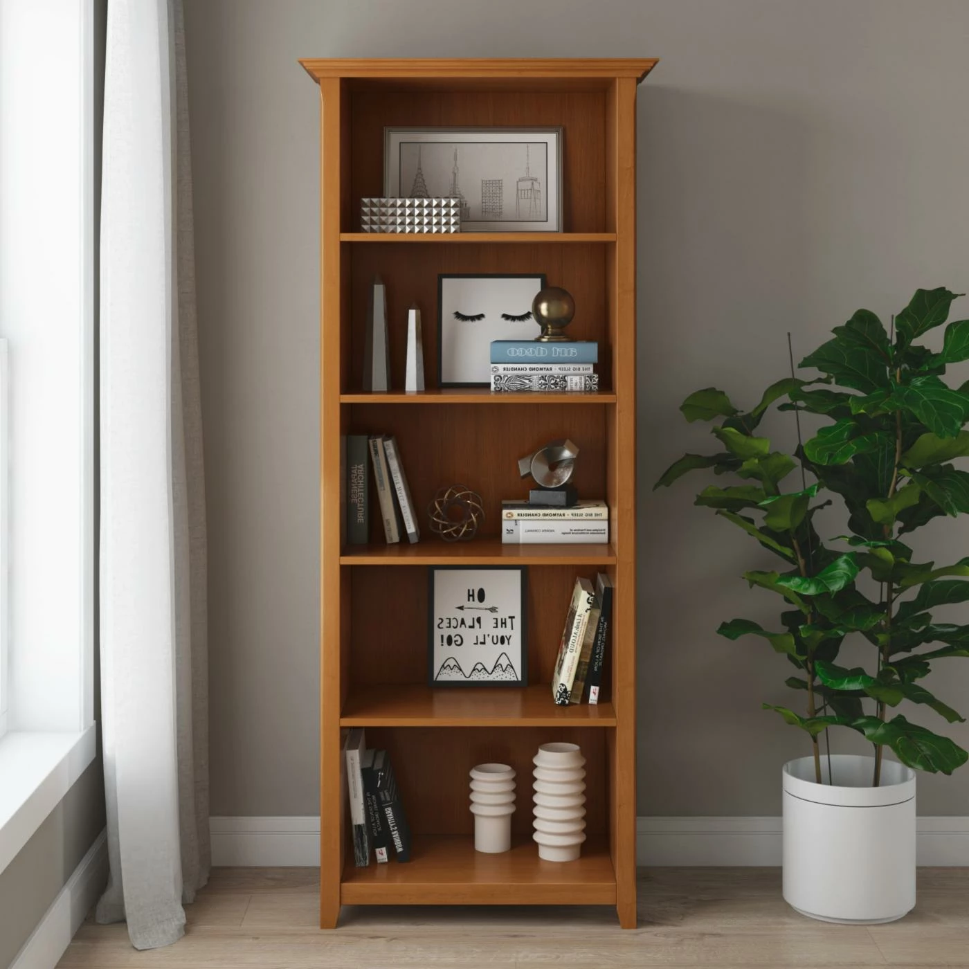 The clutter is sometimes overwhelming; books, CD’s, mementos, vases, photos, sculptures, office supplies, decor pieces… The list is endless. The Brooklyn & Max Washington Transitional 5 Shelf BookcaseΒ was designed for convenience and versatility with a 70 inch height and adjustable shelves. The Washington Bookcase, has five shelves providing the ultimate solution for all of your storage needs. Display your books and decorative accents on a dedicated display space.
