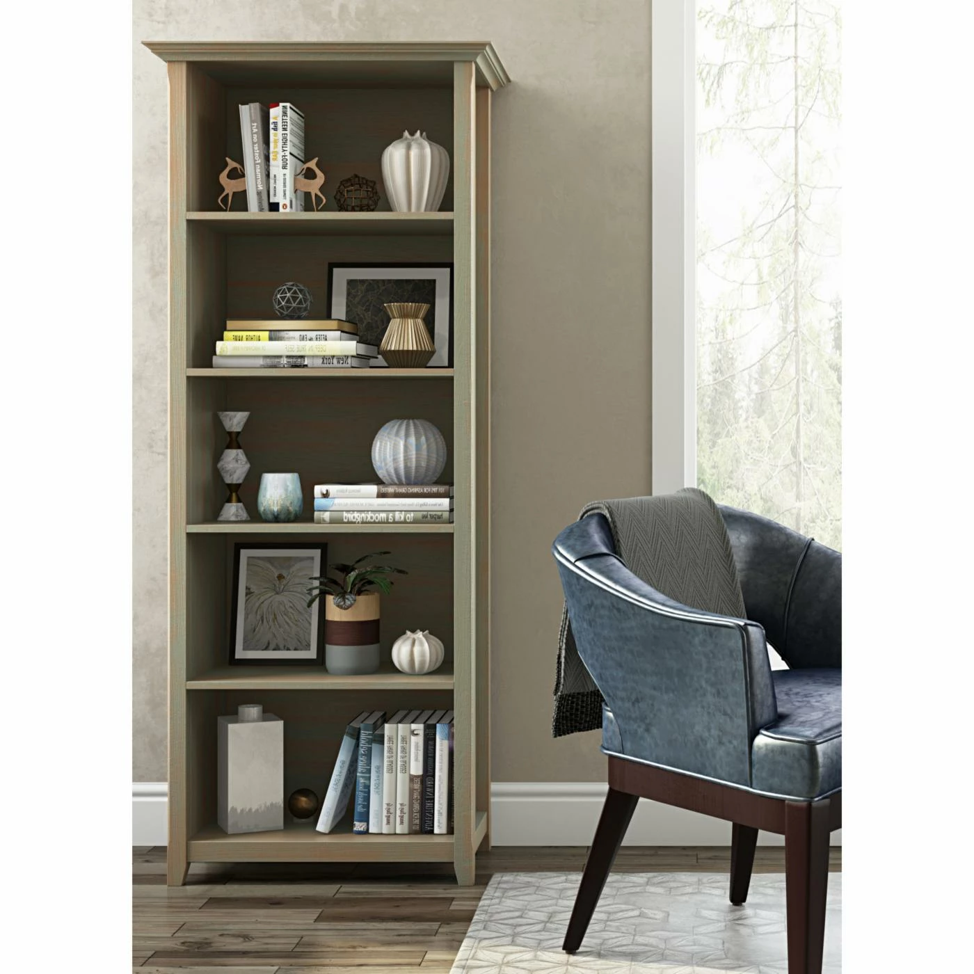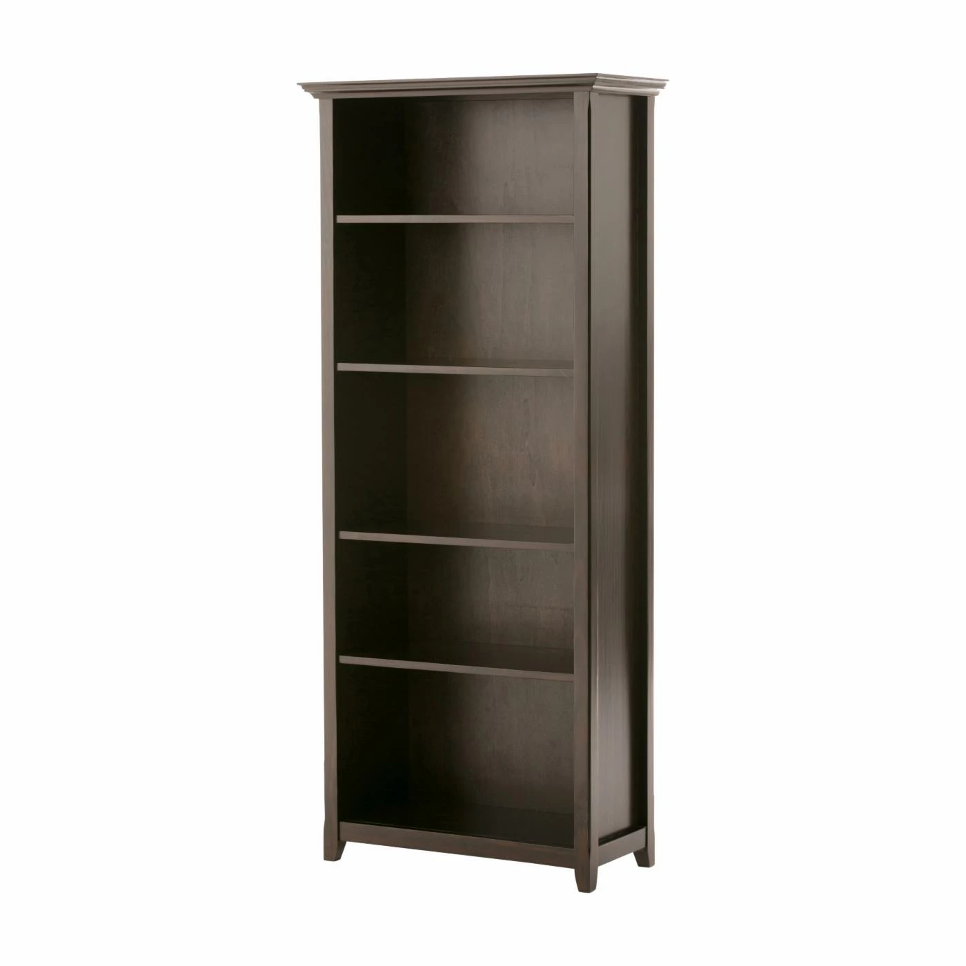 Display your books and decorative accents with the Brooklyn + Max Washington Transitional Pine Bookcase. This bookcase is made of solid pine and finished in your choice of available color. Five shelves are included, four of which are adjustable. This piece features tapered legs and elegant crown molding.