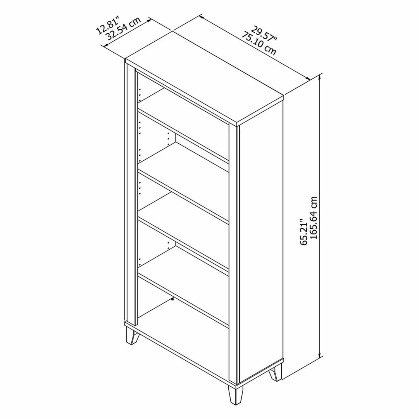 Metallic leg accents bring a modern touch to the traditional design of the Bush Furniture Somerset 5 Shelf Standard Bookcase. Five shelves provide ample storage space for your favorite books and display items. Three of these shelves can be adjusted, allowing you to arrange this bookcase as you see fit. Available in several gorgeous finishes. The sleek, clean lines of the Bush Somerset Bookcase provide a versatile storage solution for either the home or the office. Pair it with the matching Somerset Desk with Hutch (sold separately).