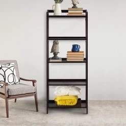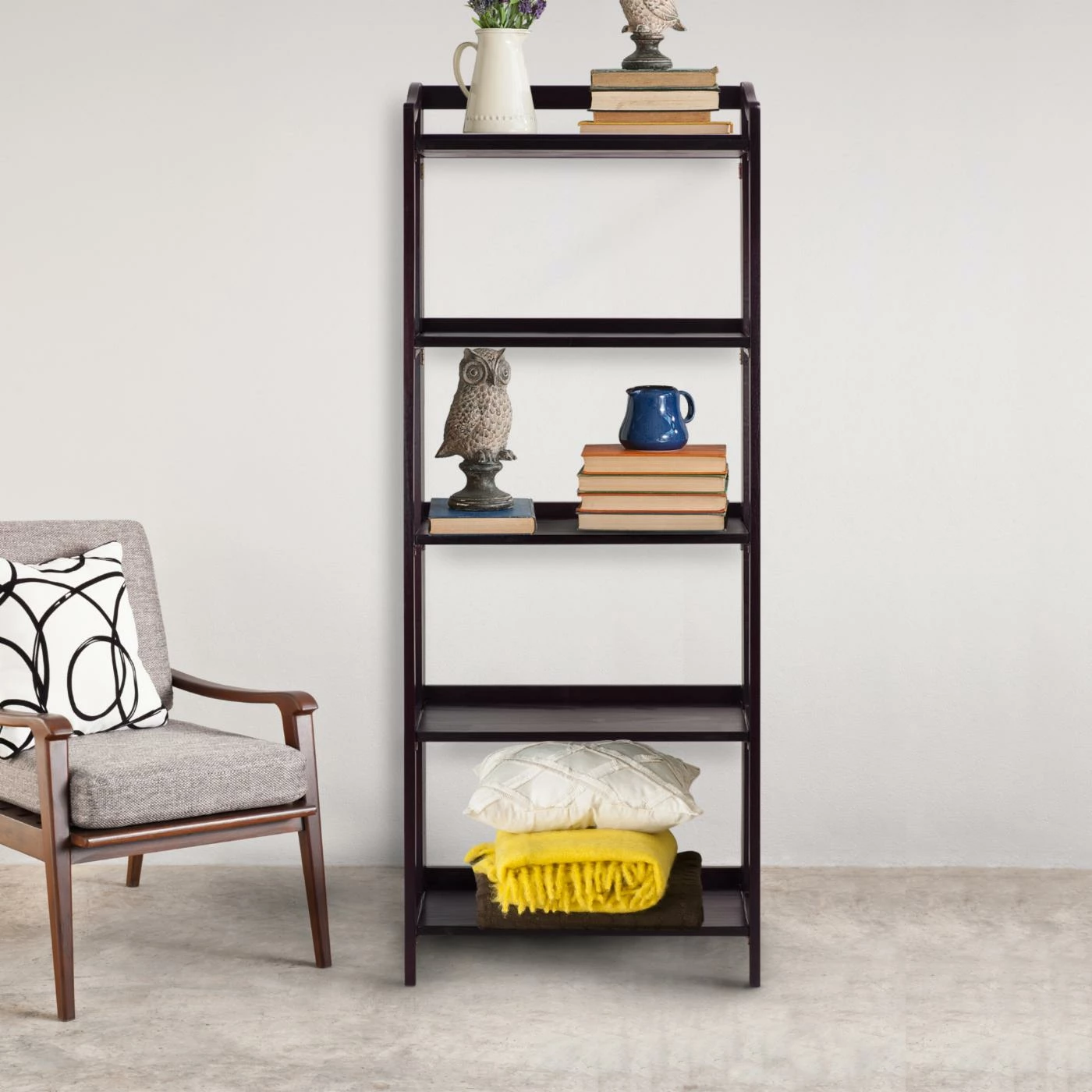 Cheap-o particle board shelves are not known for traveling well. Take a different tack with the Stratford 5-Shelf Folding Bookcase – Espresso, a beautiful solid wood bookcase that’s designed to go with you wherever you may find yourself. It coordinates nicely with modern or traditional spaces thanks to the simplicity of its clean, curving lines. And it moves easily from place to place, as it collapses and folds flat for convenience. This Stratford Collection piece in a deep espresso finish offers five shelves and a toprail to help you get maximum use out of the space. Extra storage and display are both important parts of making your dorm room, apartment, or house into a home.
