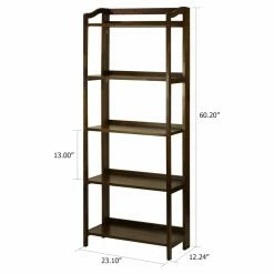 Versatility is the name of the game with the Stratford 5-Shelf Folding Bookcase – Warm Brown. The easygoing finish allows for coordination with lighter and darker elements within your home office, study area, or living space. The yoke-shaped toprail is visually pleasing and creates a connection with traditional or contemporary decor throughout the rest of the room for a harmonious atmosphere. Solid wood craftsmanship is meant to last, and this bookcase is easy to deal with when you move or rearrange the room thanks to a thoughtful folding design. It even collapses to a small footprint for storage.