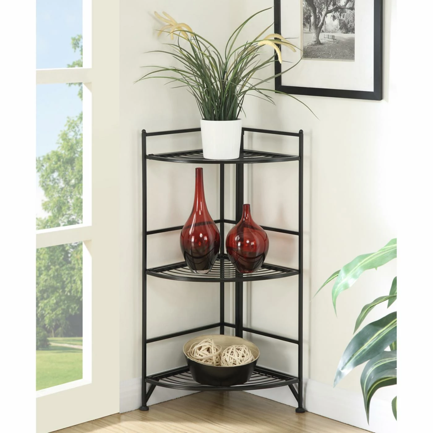 Save space with this Convenience Concepts 3 Tier Corner Folding Metal Corner Bookcase. This corner bookcase doesn’t take up much floor space yet offers three levels of metal wire shelving perfect for display. This corner bookcase is made of metal, folds for easy storage, and is available in your choice of finish.