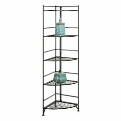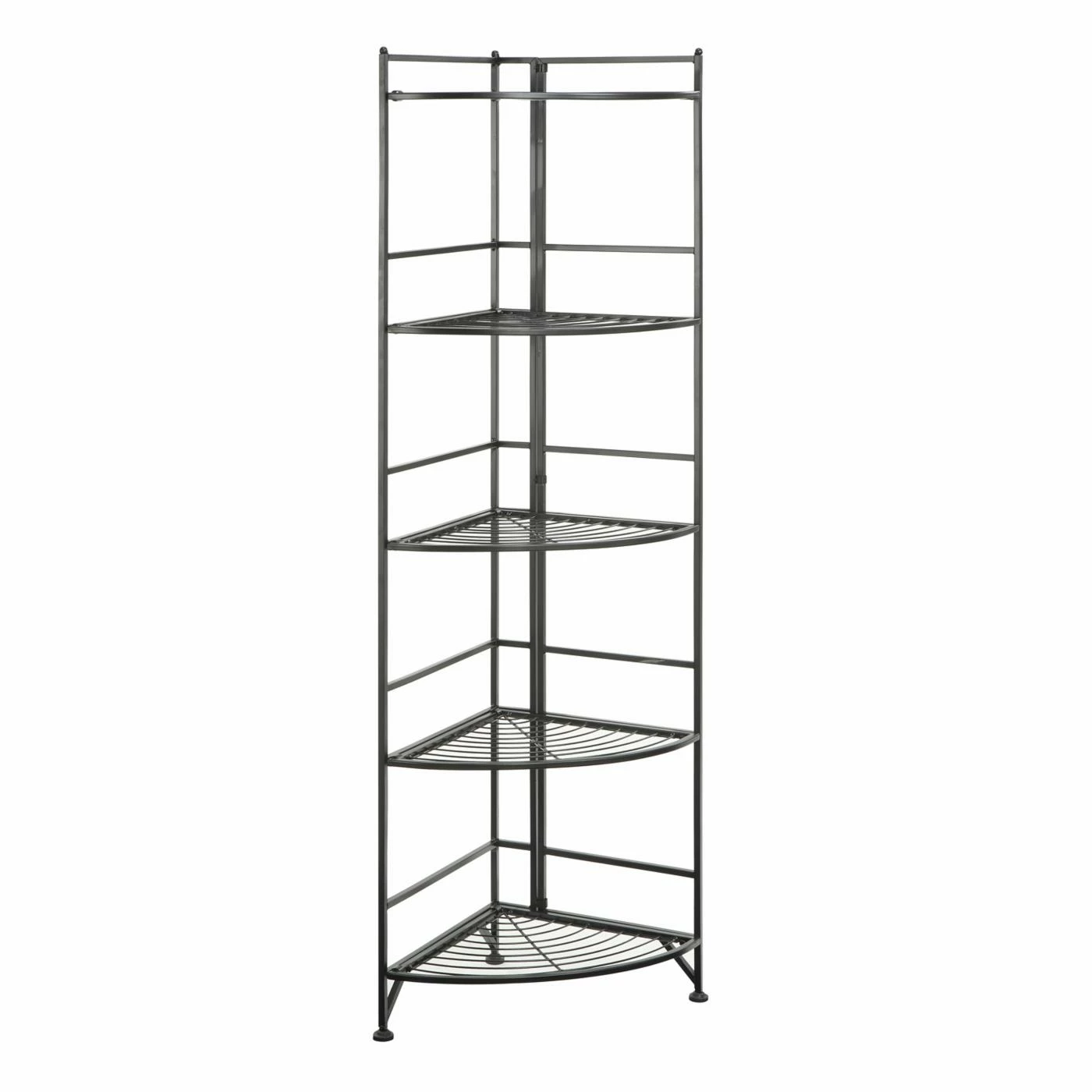 This Convenience Concepts 5 Tier Folding Metal Corner Bookcase tucks into any corner to add stylish display without sacrificing floor space. The bookcase includes five metal wire levels that offer plenty of room to showcase your favorite pieces. This corner bookcase is made of metal, folds for easy storage, and comes in your choice of finish.