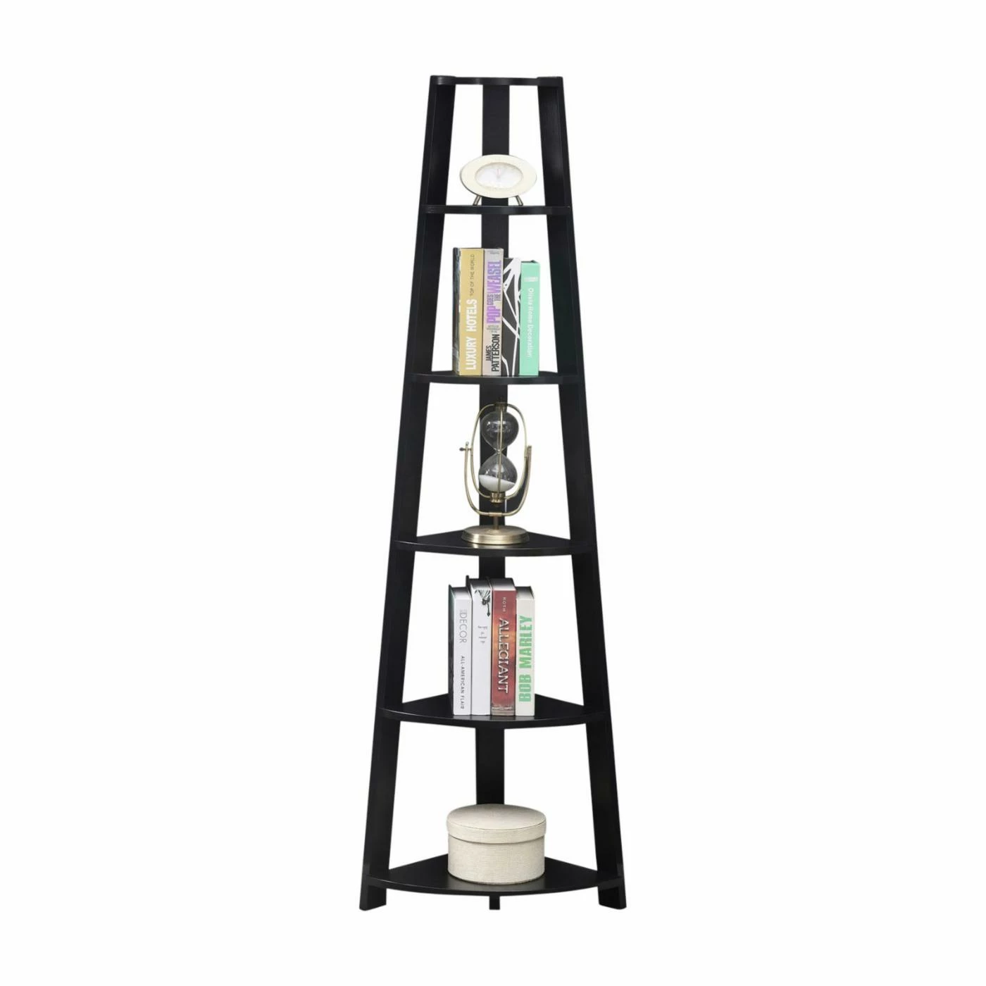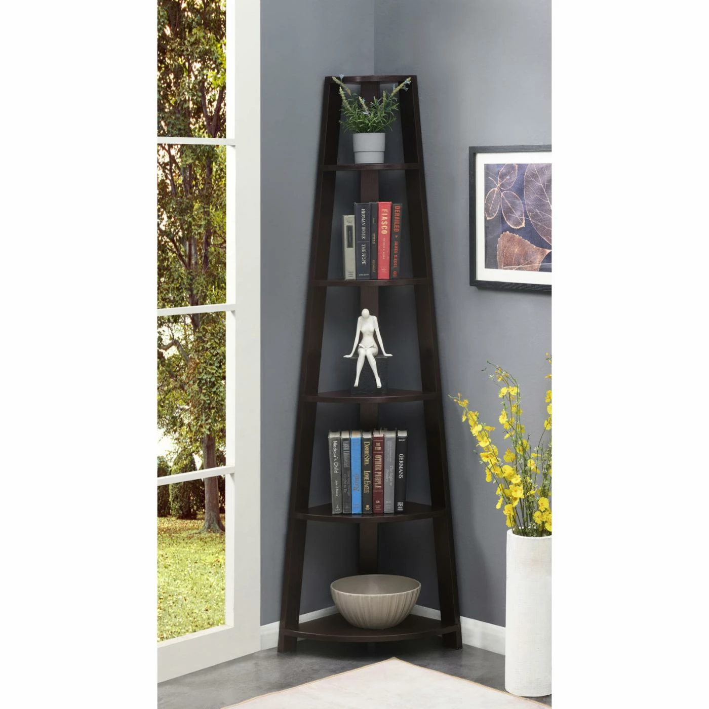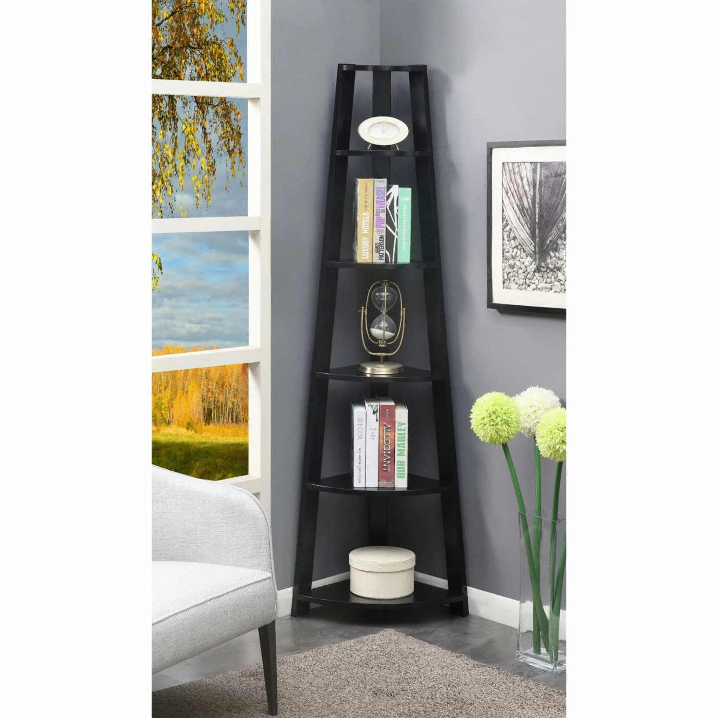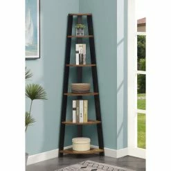 Get the most out of that unused corner with the Convenience Concepts Newport Corner Bookcase. With a total of five tiers, it will transform your corner by allowing your favorite books or collection to become part of your decor. The stylish contemporary design will ensure your living room stays in vogue. This storage unit offers limitless versatility, use in your entryway, your home office or your den. Its shelves are crafted from MDF and finished with a rich paper melamine veneer, making this item easy to maintain. The frame is made from particle board that is finished with paper melamine as well, making it sturdy. Bring home today and enjoy its simple and fast 4 step assembly! Part of the Newport Collection by Convenience Concepts. Available in multiple finishes, to ensure you find the perfect fit for your home. Pair with more furniture pieces from the Newport Collection by Convenience Concepts. Each sold separately.