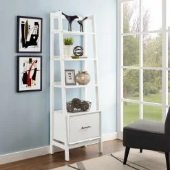 The simple, space-saving design of this Crosley Landon Small Etagere Bookcase makes it ideal in any sized room. Its timeless appeal includes a tapered, open bookcase with fixed shelving and a generous lower cabinet drawer with side mounted guides and dividers inside. This etagere is built of solid wood and available in select finish options.
