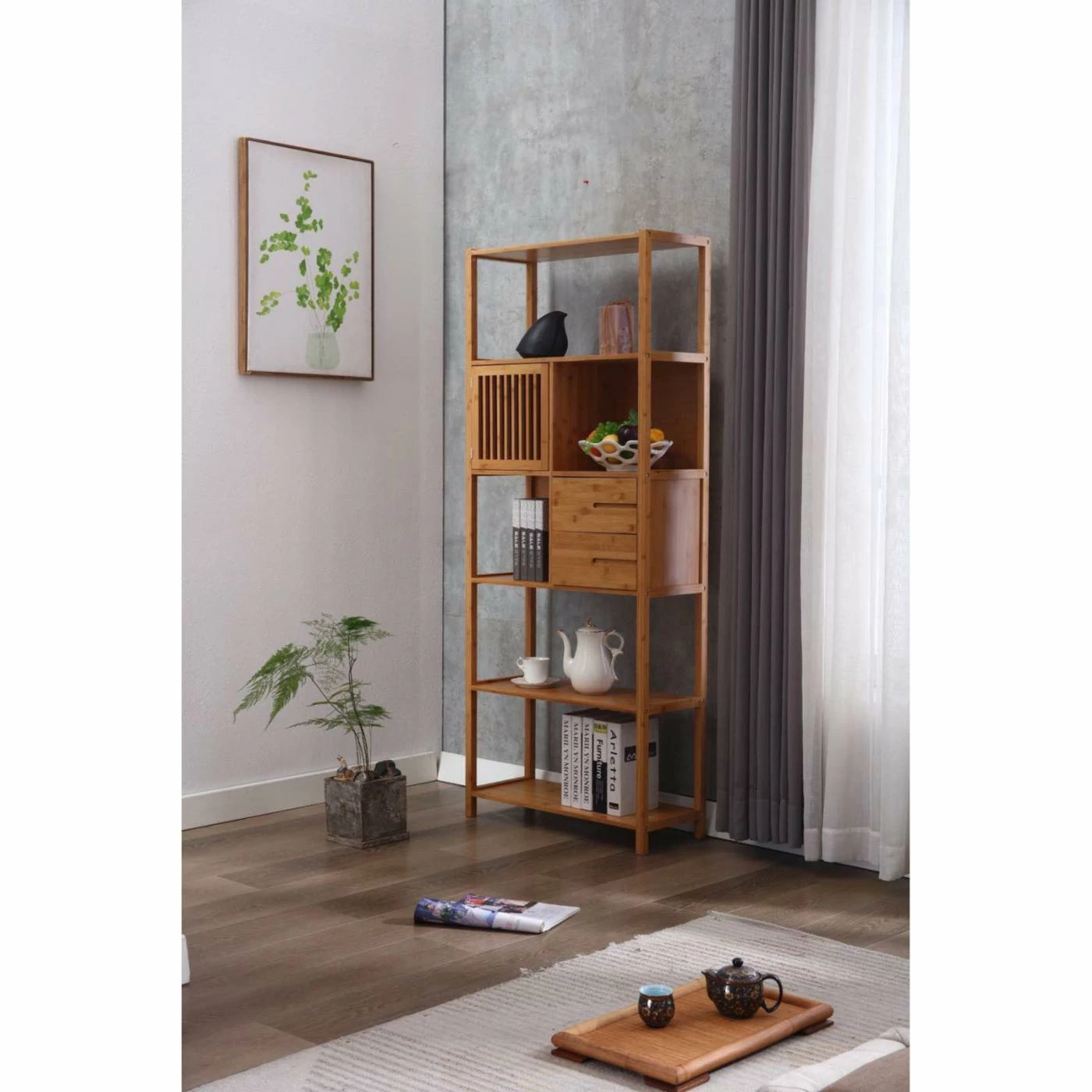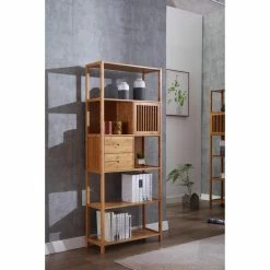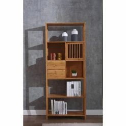 Put your favorite books and treasured keepsakes on display with the Boraam Selma Bamboo Decorative Bookcase. This bamboo bookcase comes in your choice of finish and features three open shelves and four center cubbies that include a cabinet and two drawers for easy storage. Choose the proper configuration to best suit your space.