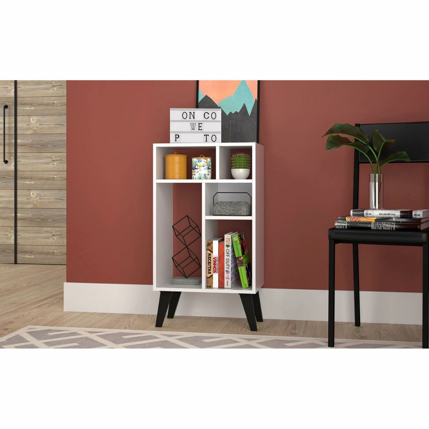 The piece every living space needs, the Manhattan Comfort Warren Modular Bookcase – White/Black nails Mid-Century design and subtle sophistication without compromising on functionality. Airy open shelving is perfect for displaying framed photos, leaning favorite coffee table books on their sides, travel mementos, candlesticks, and beyond, while the closed shelves offer an option for artful accessories, decorative items, or wine glasses. Whether in a formal dining room or city loft, the bookcase works well with any style living and blends beautifully with all existing decor.