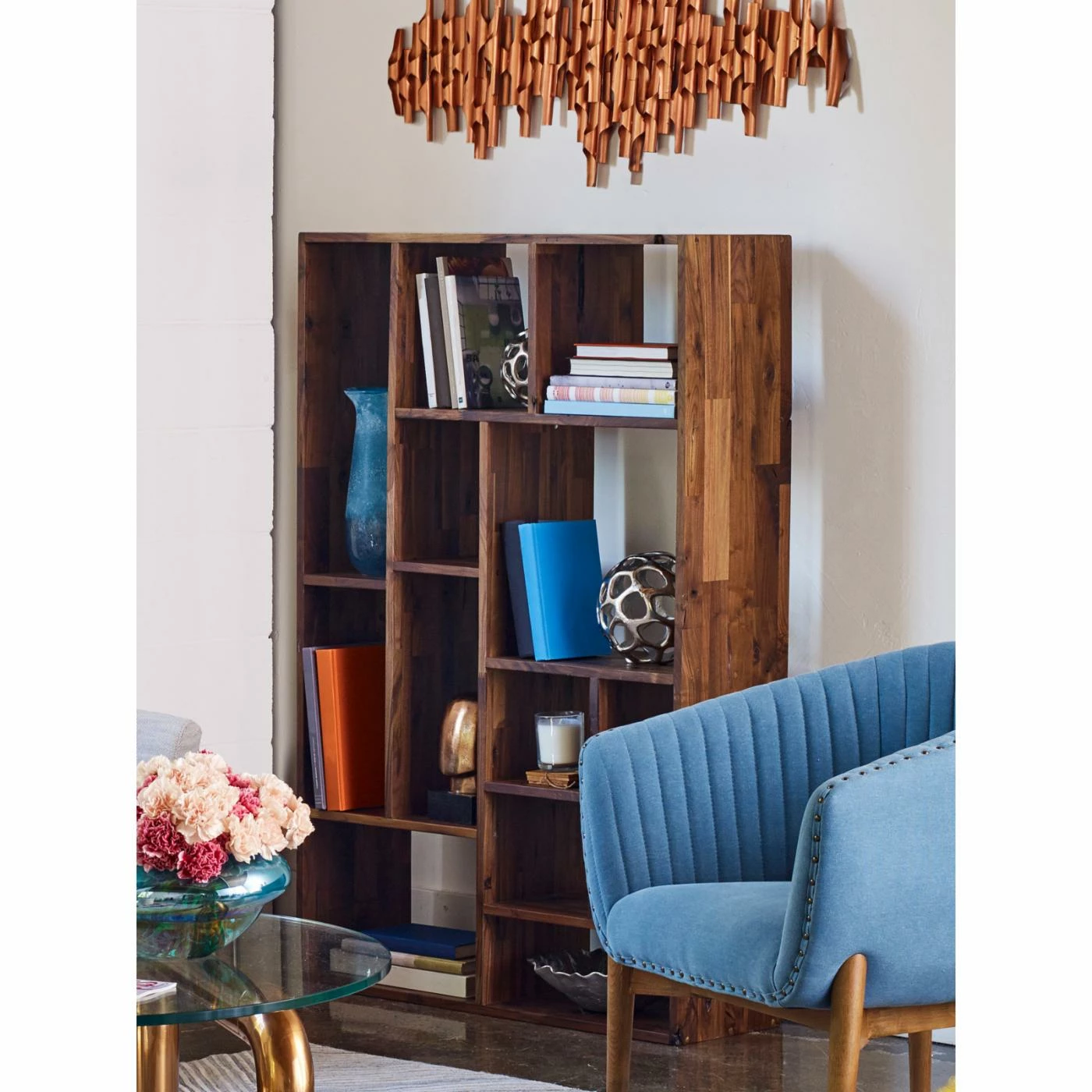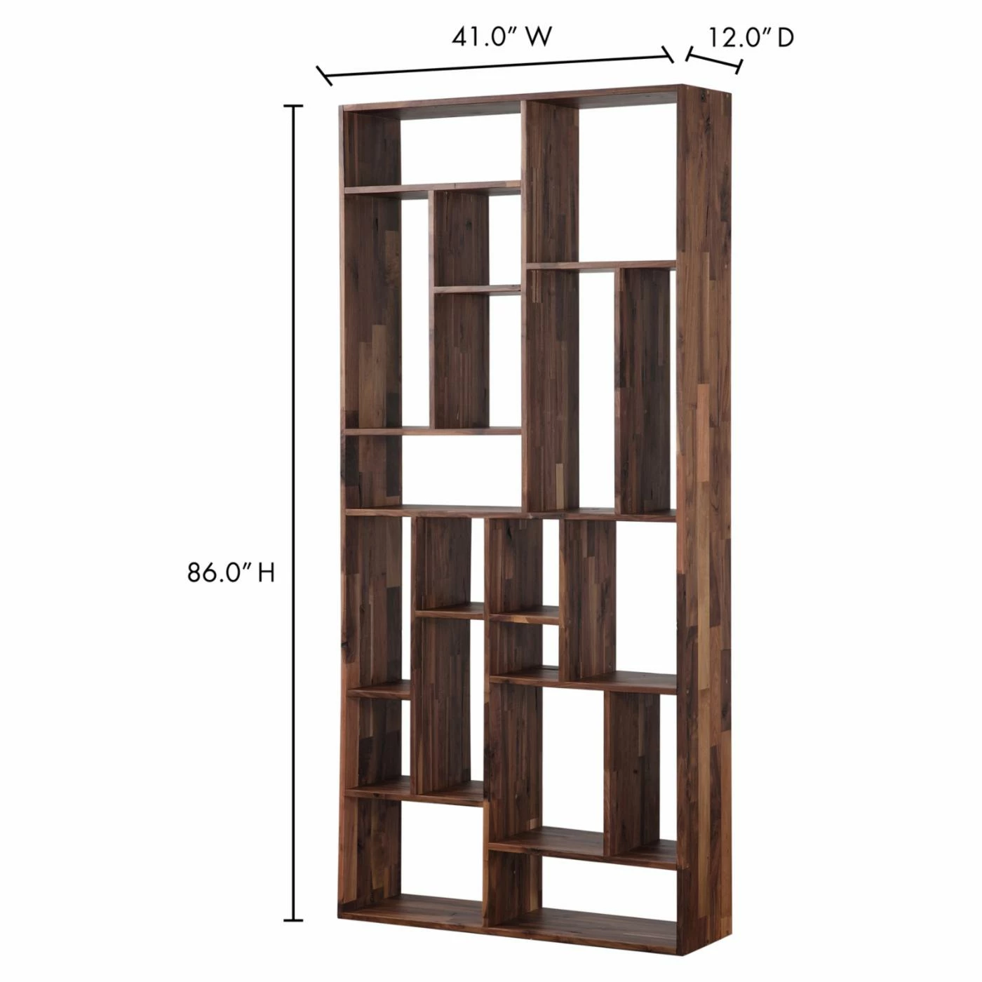 Turn sustainable sourcing on its head with the wholly unique Moes Home Collection Wastewood Bookcase. Embracing its eco-friendly status by making it the centerpiece of the design, this bookcase is painstakingly crafted by fusing together tiny pieces of premium hardwood that was otherwise cast off. Its varying shelves provide visual interest in spades. Available in small and large sizes with customizable finish options including oak and walnut.