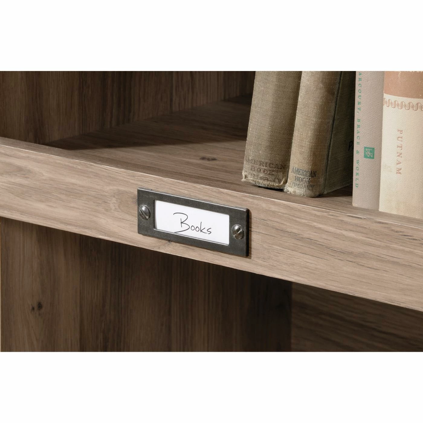 The Sauder Barrister Lane Bookcase is a handsome organizer for everything from novels and work documents to framed photos and prized collectibles. The robust bookcase is crafted of engineered wood in a salt oak finish that complements almost any dΓ©cor, be it classical or contemporary. It offers eight cubbyhole shelves with slots for labels and two extra-large bottom shelves perfect for baskets.