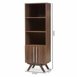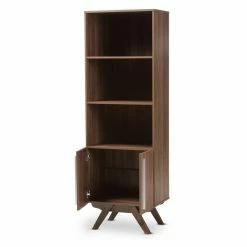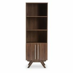 Display books, picture frames, or store your favorite decorative items on the Baxton Studio Ashfield Mid-Century Modern Wood Bookcase. This modern bookcase has three open shelves and one cabinet to keep things organized. The contemporary design features sleek metal hardware and modern finish options for an up-to-date look. Sturdy wood and engineered wood construction makes it durable for prolonged use.