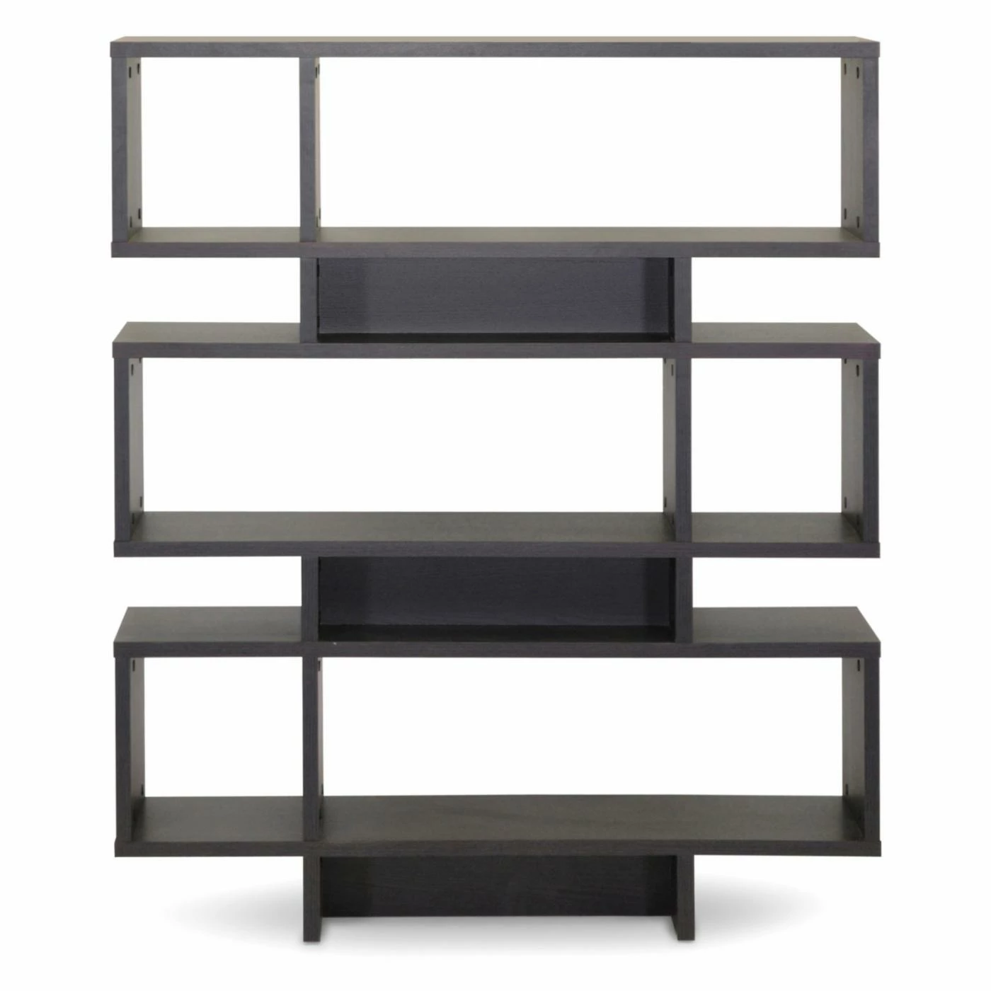 Featuring three divided shelves and three cubbies, the Baxton Studio Cassidy 6 Level Bookshelf gives you plenty of space for arranging your library of books and media, and showing off decorative accents. The bookshelf is constructed out of engineered wood, and features a dark brown woodgrain-effect paper veneer finish.