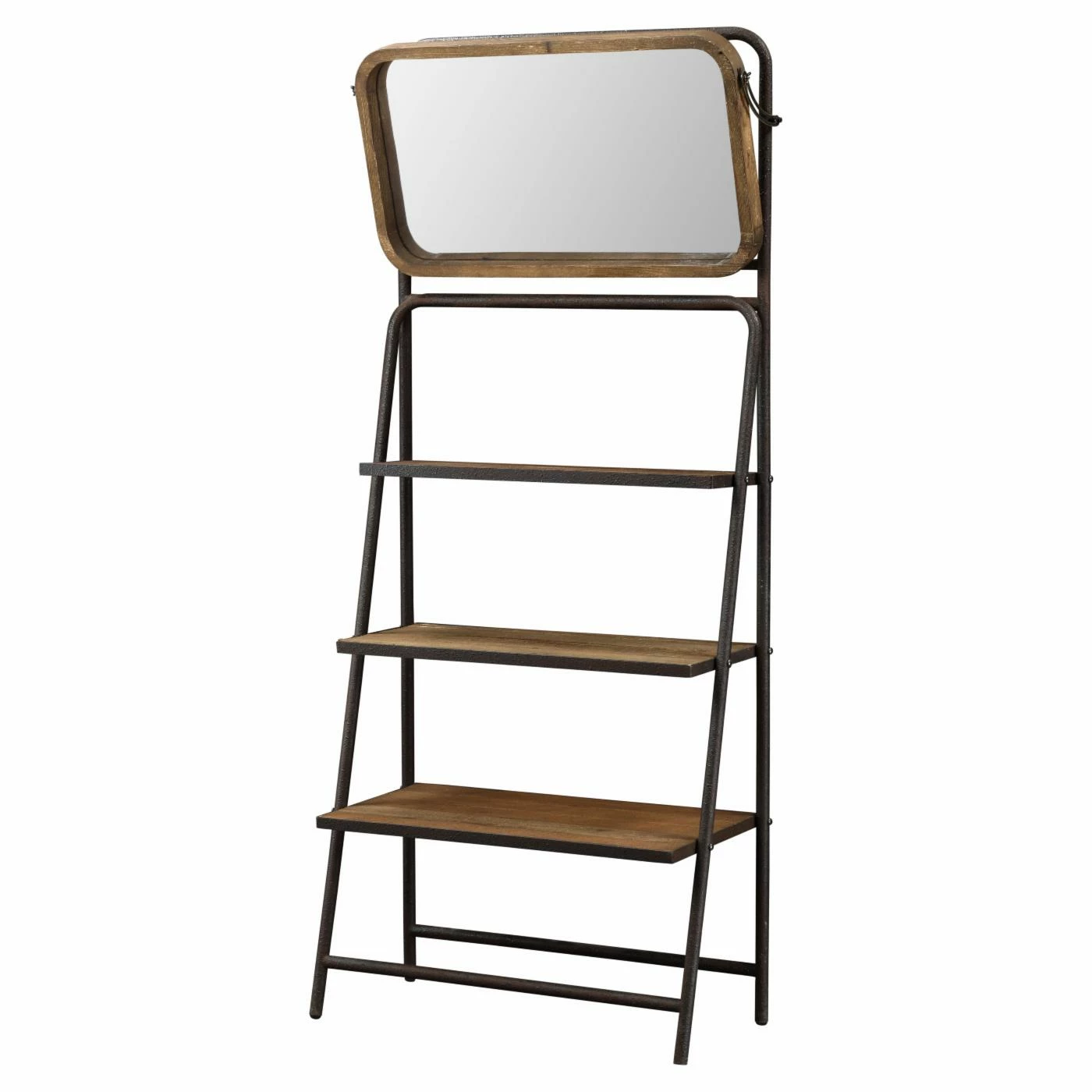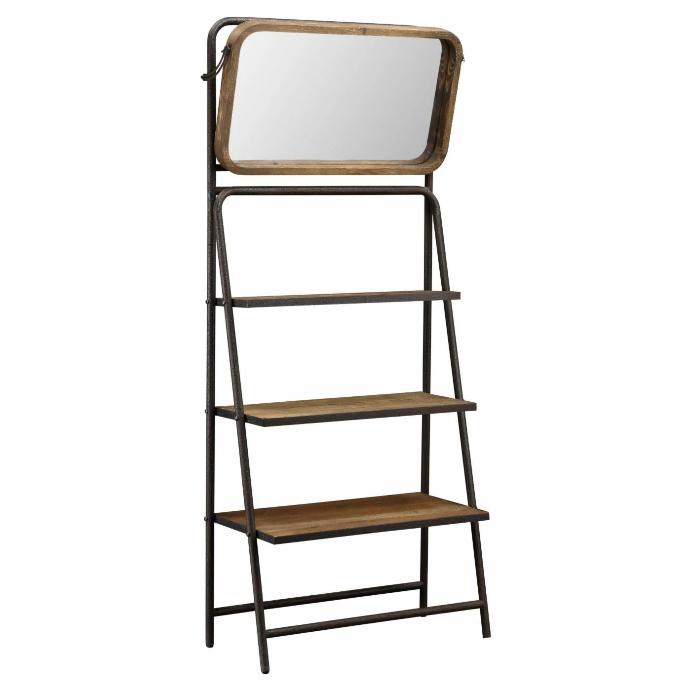Arrange your favorite books or a variety of dΓ©cor items in rustic style on the three shelves of the Burnham Home Designs Gloria Mirror Bookshelf. Natural finishing highlights the beauty of the metal frame and old pine wood shelves. A tilting mirror at the top brightens up your space and lets you catch a glimpse of your look.