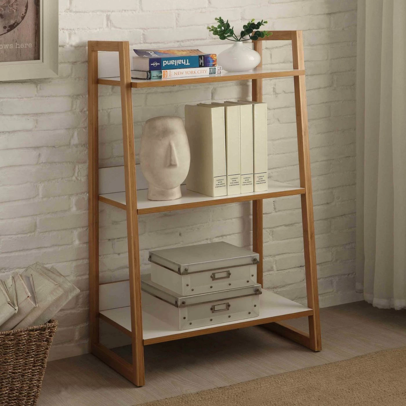 Grapple with glamour in an understated, casual way Convenience Concepts Oslo Sundance 3 Tier Shelf. Combining Californian style elements with classic Scandinavian design principles, this angled bookcase tower’s shelves decrease in depth as they ascend, thusly creating a harmonious, balanced display space for any room. Shelves have a white finish while the frame and shelf edges have a bare naked natural wood finish.