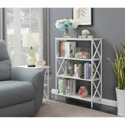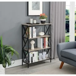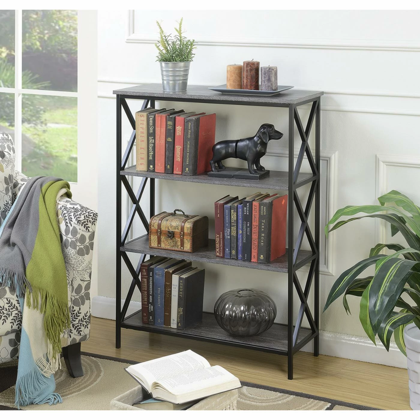 The transitional Convenience Concepts Tucson 4 Tier Bookcase introduces stylish display space into any room. This bookcase boasts a metal frame with open X side design. It offers a generous top level and three lower shelves perfect for showcasing books and small collections. This bookcase is available in your choice of select finish options.