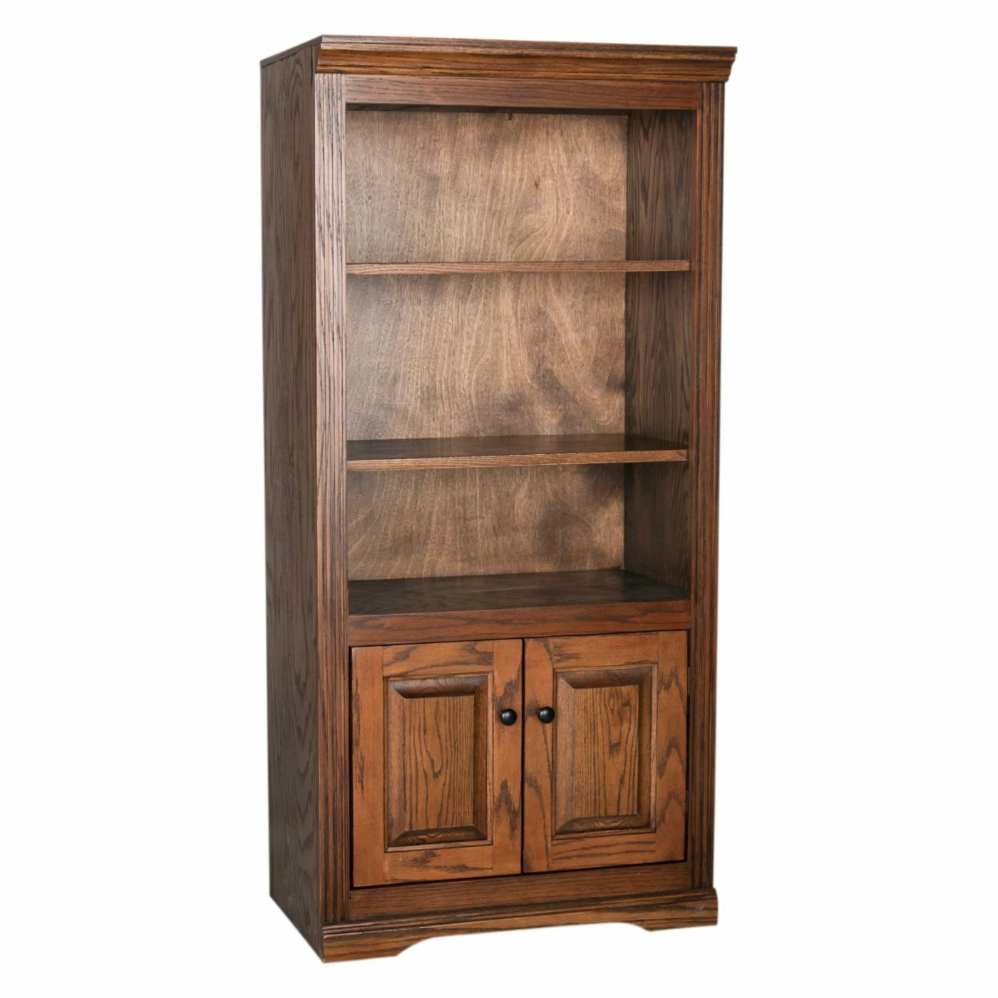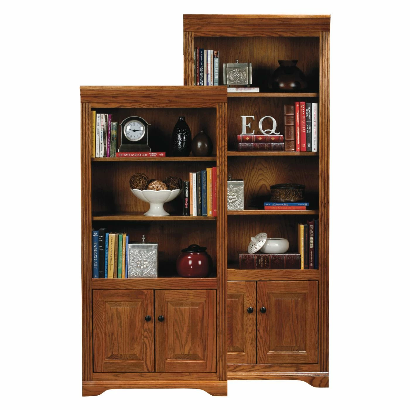 Sophisticated and practical with its modern design, decorative molding, and fluted detailing, the Eagle Furniture Oak Ridge Customizable Open Bookcases with Doors will quickly become one of your favorite pieces of furniture. Crafted from beautiful oak hardwood and available in your choice of gorgeous finishes (shown here in dark oak), it boasts raised panel doors complemented by brushed black hardware – the perfect place for storing those items that seem to have nowhere to go. Available in your choice of size, each bookcase has at least two adjustable wooden shelves so you can fit items of varying size. Ideal for holding books and showcasing your favorite decorative pieces, this bookcase is a great addition to any home. Made in the USA.