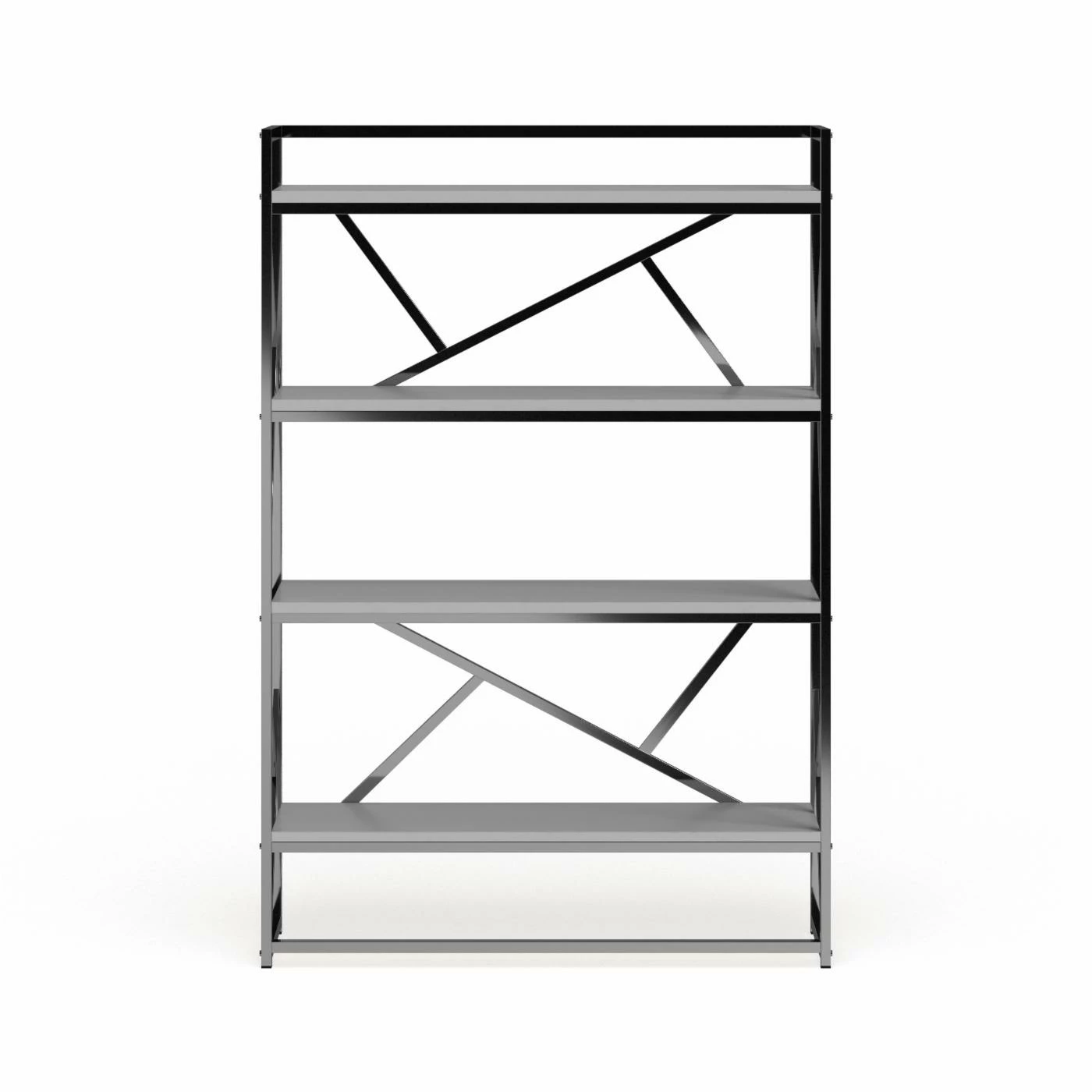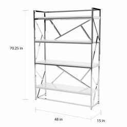 With it’s sturdy construction and open design, the Furniture of America Kyle Contemporary Bookcase is great for storage and display. It’s made with a metal framework that has asymmetrical bars. The shelves are made wood and have a glossy white lacquer finish. Plus, the elevated bottom shelf offers extra storage space and adds a touch of modernity.