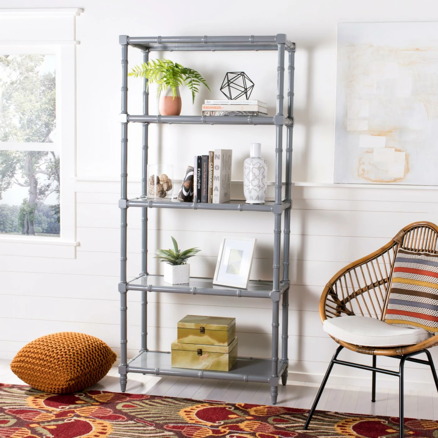 Avail yourself of the HN Home HastingsΒ Boho 4 Tier Etagere‘s fashionable display possibilities. Bamboo-like articulated joints define the poles that make up the frame. Four open shelves can hold various treasures from books to ceramics. Some would even use this etagere as a clothes-drying rack for those lay flat to dry garments. Whether your style is meant to evoke tropical breezes or the coziness of a Yorkshire country cottage, this bookcase adds nuance to the atmosphere.