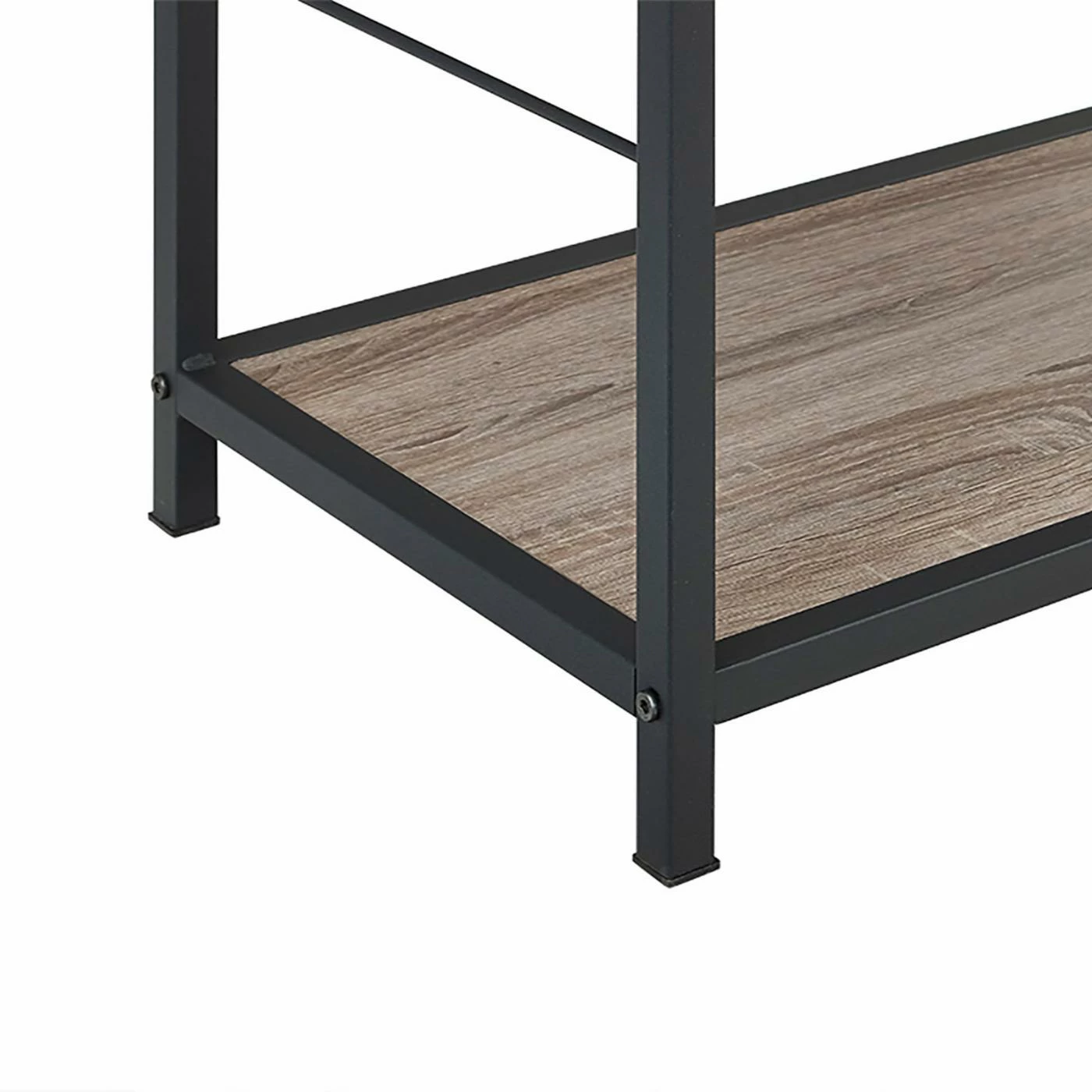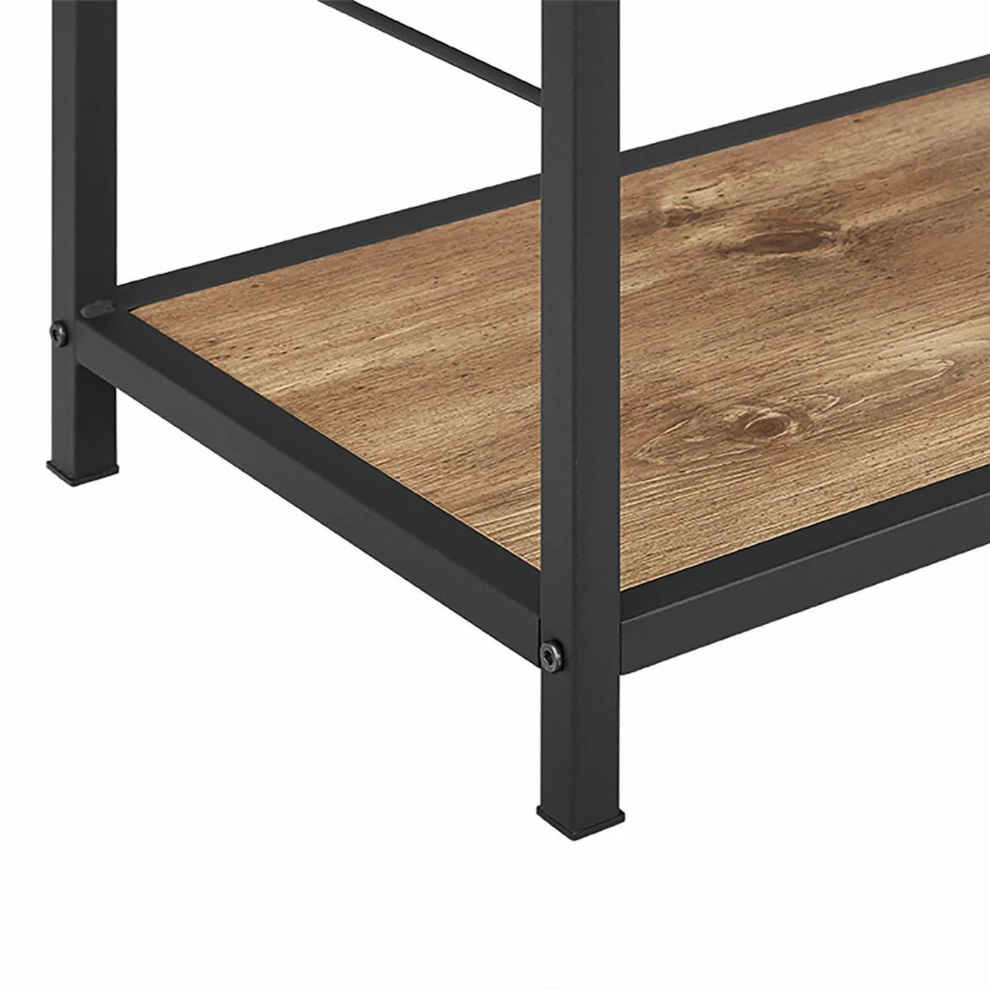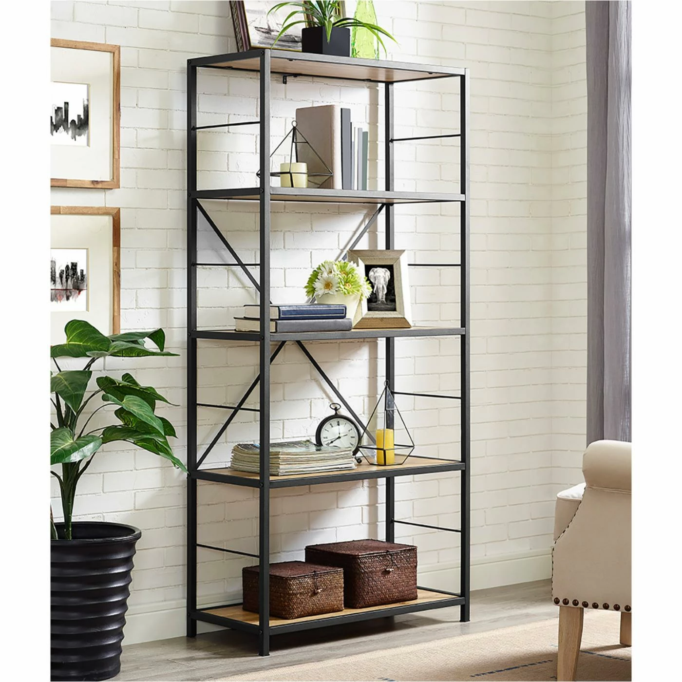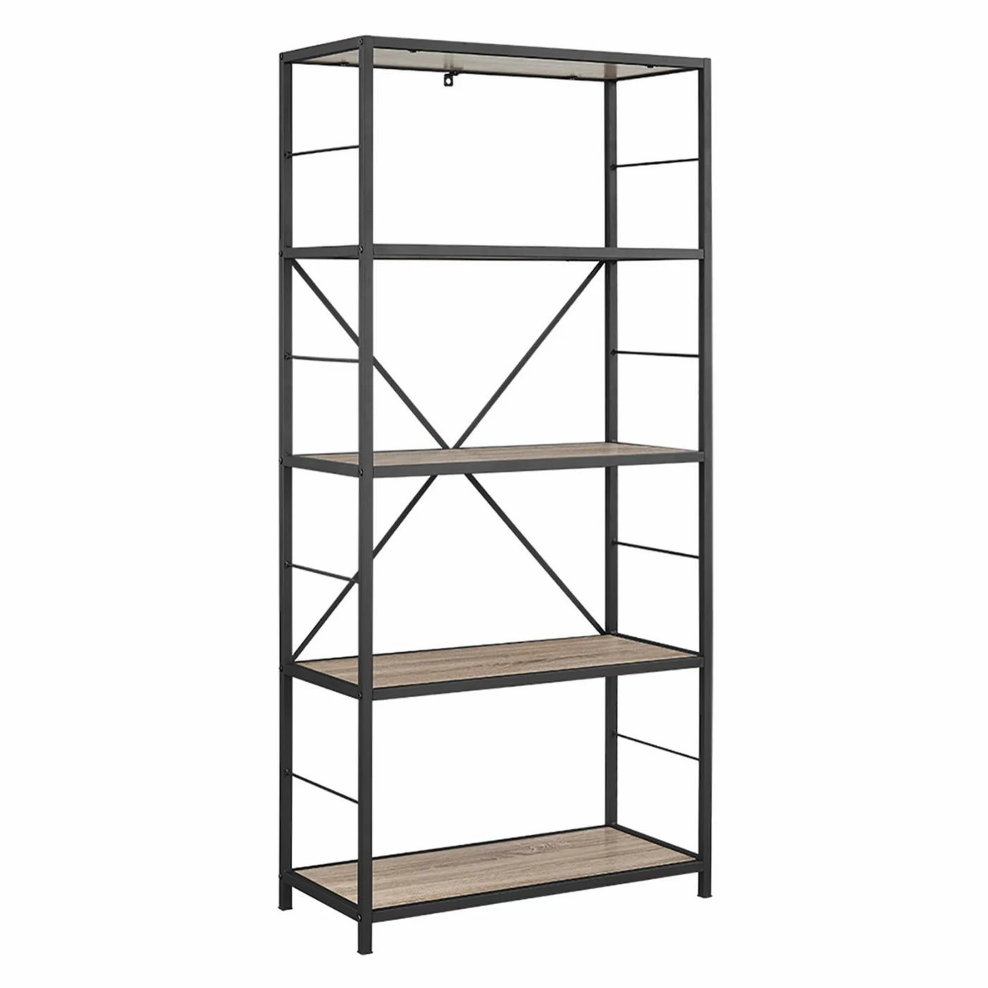 The rich vintage styling of the HumbleNest Countryside 60 in. Rustic Media Bookcase makes for a perfect display piece in your home. The powder-coated metal frame features handsome horizontal and X-shaped supports, and the various shelving layers, made of engineered wood, provide ample space for displaying books, magazines, dΓ©cor, and other essentials.
