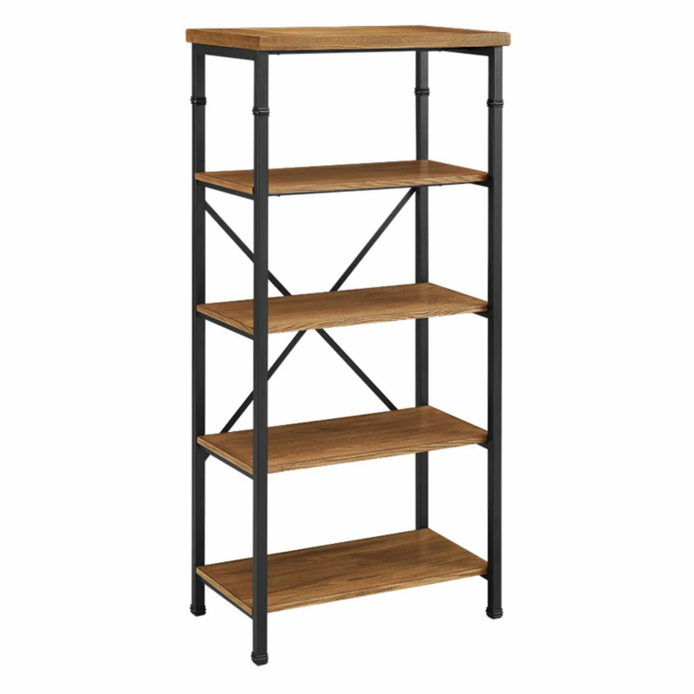 An average bookshelf is good when it’s full, but a great bookshelf like the Linon Austin Bookcase looks good no matter how it’s being used. That might be due to the way the warm hues of the black ash veneers are contrasted by the cool, industrial style of the powder-coated steel frame. Subtle details on the frame and the X-shaped supports give it a bit of charm so it doesn’t seem to cold, but the real appeal will be filling it with your own belongings and watching the entire arrangement change your space.