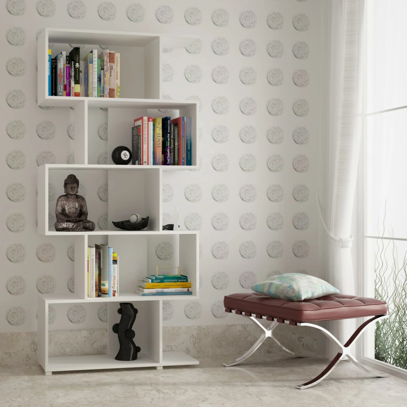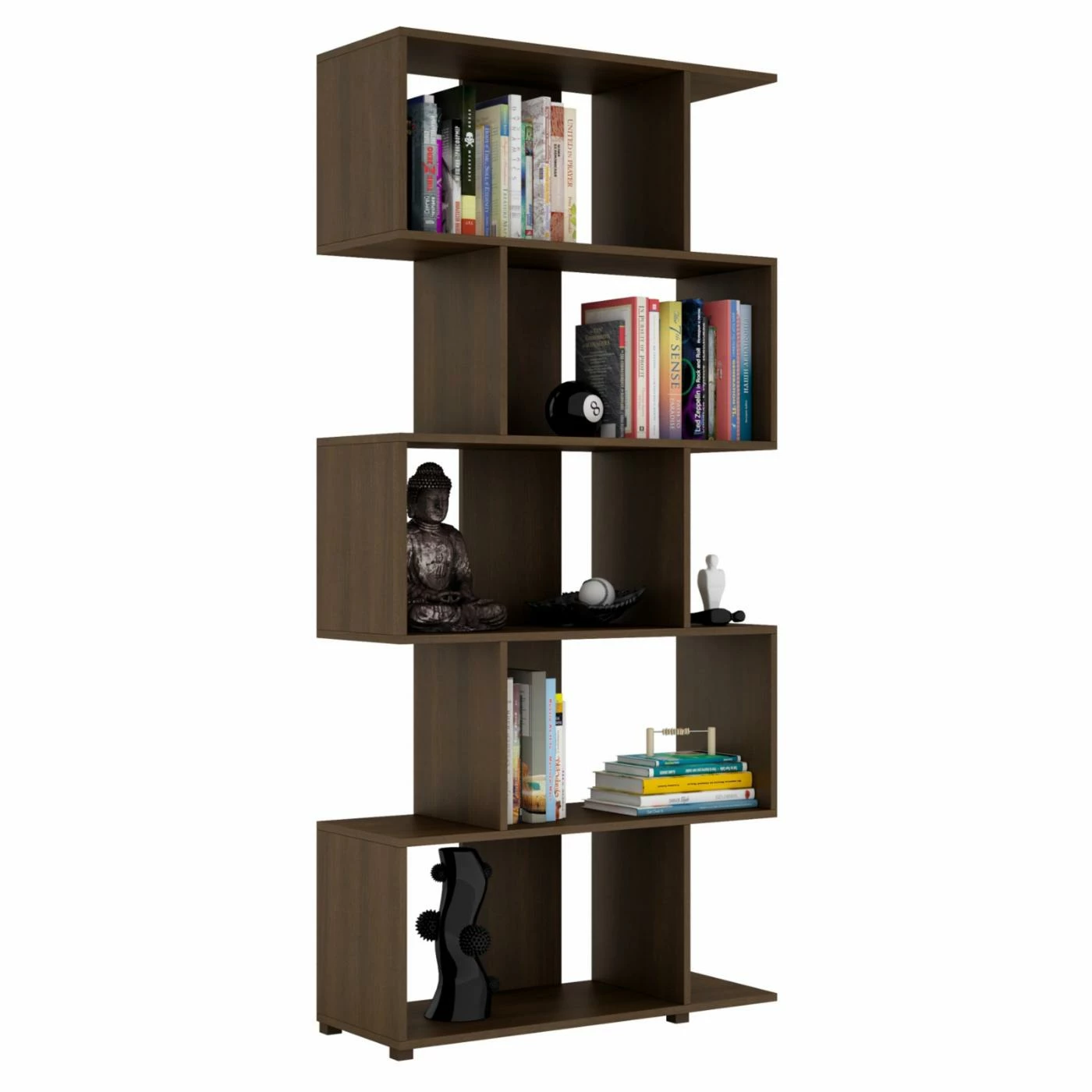 Add zig, zag, and serious zing to your space with the Manhattan Comfort Petrolina Z-Shelf Bookcase. Five shelves with a slightly protruding silhouette zig and zag across your wall, setting a chic scene for your favorite books, home accents, and more. Made of high-quality medium density particleboard in your choice of finish.