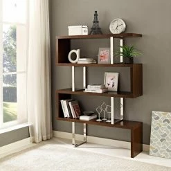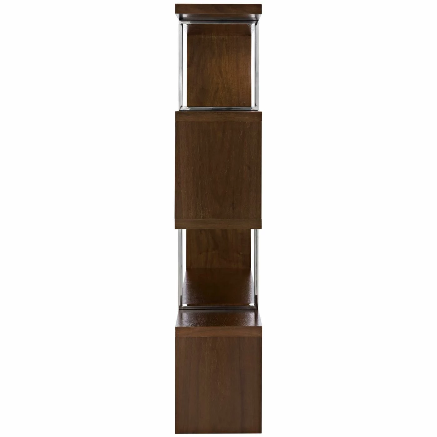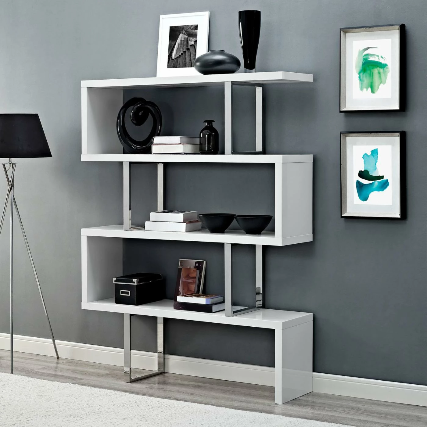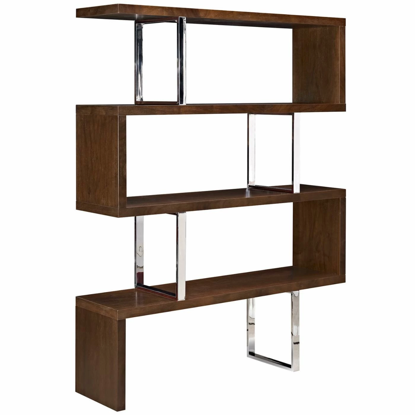 The Modway Meander Stand Bookcase incorporates sturdy build with fluid design to create a unique piece. Great for contemporary living rooms and offices, this unit has four fixed shelves and supports itself with polished steel supports. The rest consists of durable fiberboard covered in a veneer. The design conveys a sense of movement while providing space to keep books, display d&eacure;cor, and store items.
