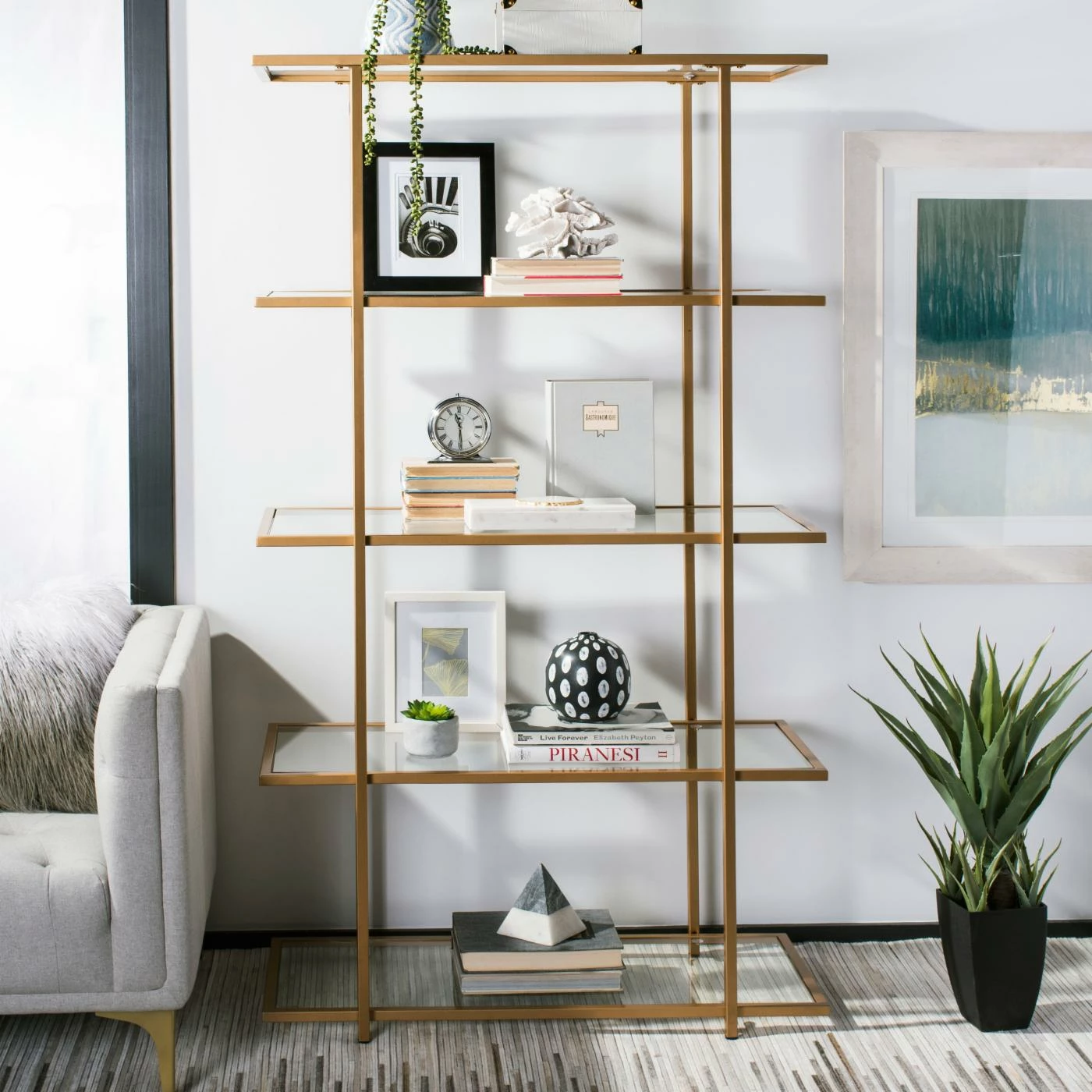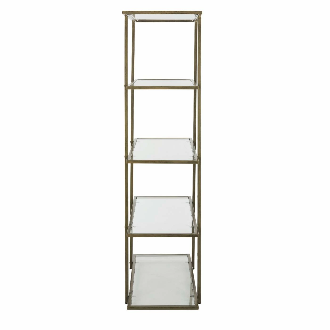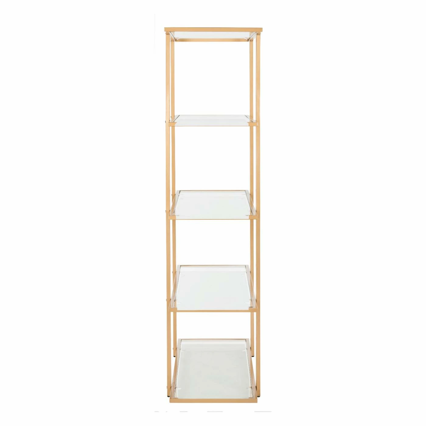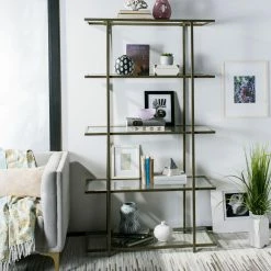 Enjoy a modern look that’s extremely versatile with the metal-frame Safavieh Francis 5 Tier Etagere. It boasts an open design that’s enhanced by its clear glass shelves and the generous distance between each one. This etagere is designed with clean lines and sharp angles, and it flaunts a metallic finish. It’s a great piece of display furniture for a living room, hallway, or office.
