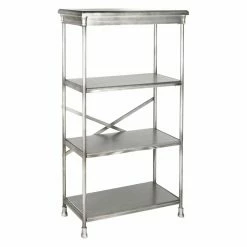 Clean lines and an open-back design lend contemporary-chic style to the Safavieh Jacinda Tall Etagere. This etagere is crafted with a sturdy iron frame and engineered wood shelving that resists warping, denting, and scratches for a fresh, new look that lasts over time. X-bracing along the backside and a dark silver finish complete this versatile shelving, lending a hint of industrial appeal to your home.