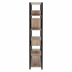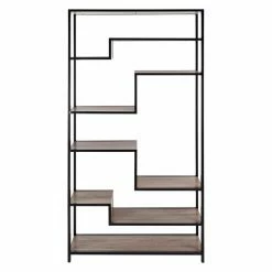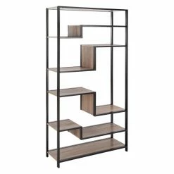 Create a focal point in your living room, study, or office with the Safavieh Joanna Retro Mid-Century Wood Etagere, which features an alluring combination of straight and zig-zagging lines. As a result, this etagere offers display spaces that vary in size, allowing you to display large and small decor The shelves are designed with oak-tone panels, and the frame has a contrasting dark finish, which brings an added touch of flair to the look.