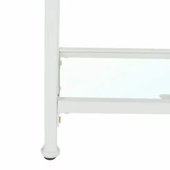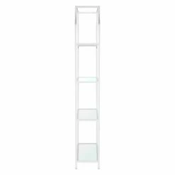 Create additional storage space in any room with the Safavieh Slater 4 Tier Etagere, featuring clear glass shelving and a sturdy iron frame. This chic etagere is designed with four fixed shelves to display favorite novels, cookbooks, ceramics, and photos. The top of this etagere boasts curving decorative detail to offset the minimalistic, straight flow of the framing.