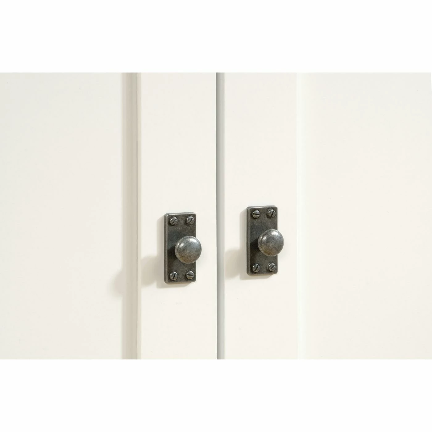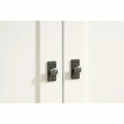 The versatile storage of the Sauder Cottage Road Library Bookcase with Doors can benefit any room. This charming design is crafted from engineered wood and veneer in soft white with shelves finished in lintel oak. These three shelves are adjustable so you can customize the bookcase to your needs, and the double doors open to even more storage space within. Some assembly is required.