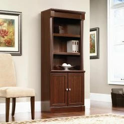 Make any room in your home an elegant opportunity to display your items with the Sauder Palladia Library Bookcase with Doors – Select Cherry. This bookshelf offers the ideal combination of exposed and concealed storage. The shelves are adjustable in height for custom results.