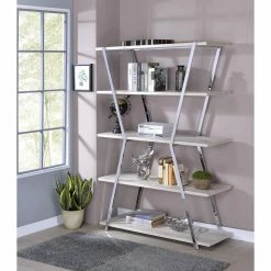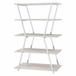 An angular hourglass frame makes the Furniture of America Ketano 4 Shelf Bookcase a visual treat. Four sturdy shelves, plus a matching top offer five levels for display. An open back gives you designer versatility as you can style this bookcase against a wall or use as a chic room divider. Customize the look of this bookcase by choosing from available frame finishes.