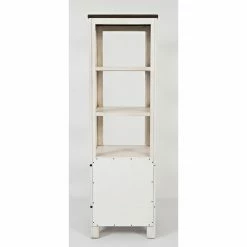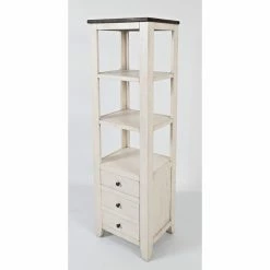 For display and storage with a rustic farmhouse flair, you need the Jofran Madison County Bookcase. Reclaimed pine wood construction and your choice of available distressed finish options give this bookcase its rugged design aesthetic. Three fixed, open shelves offer plenty of room for display, and three drawers provide tucked away storage space. You can also use this bookcase as one pier for your media center.