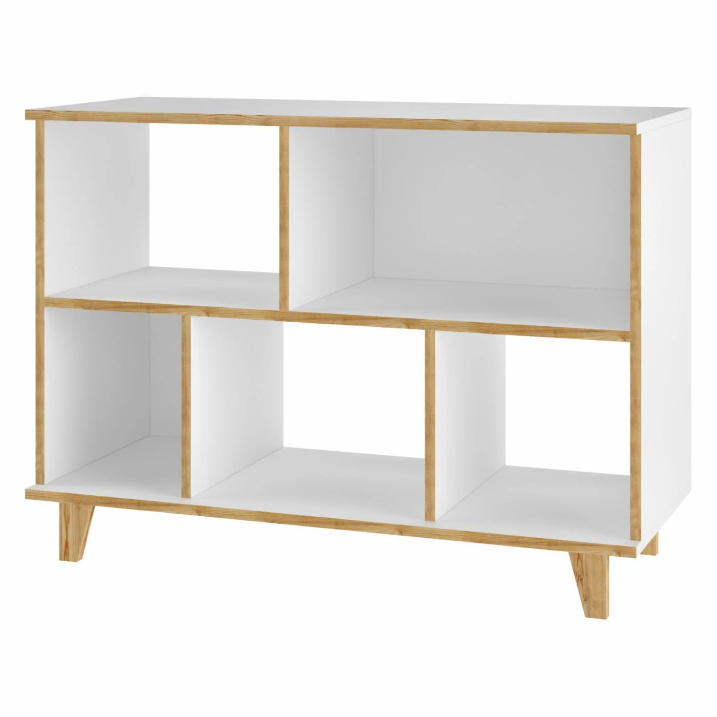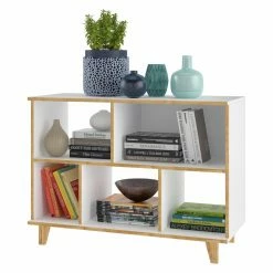 The Manhattan Comfort Minetta Bookcase offers an elegant solution to displaying your travel trinkets, books, and photos. Three open shelves and two enclosed cubbies define multiple displaying spaces for your favorite items. This bookcase is constructed of engineered wood in white.