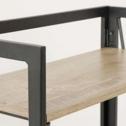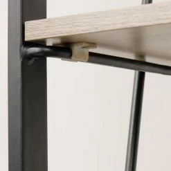 Add a rustic reclaimed look to any room with this metal and rough look sewn oak laminate four shelf bookcase. Easy assembly that requires no tools whatsoever. Simply fold the parts out and snap the shelves in place. It is just as easy to disassemble for storage or moving. The metal frame provides stability and style when paired with the wood look shelving. Create a small home office by adding in our 42240 desk.