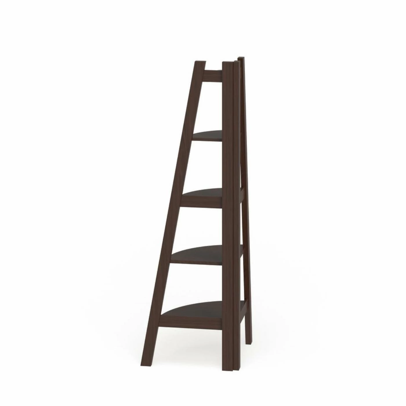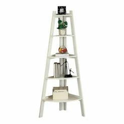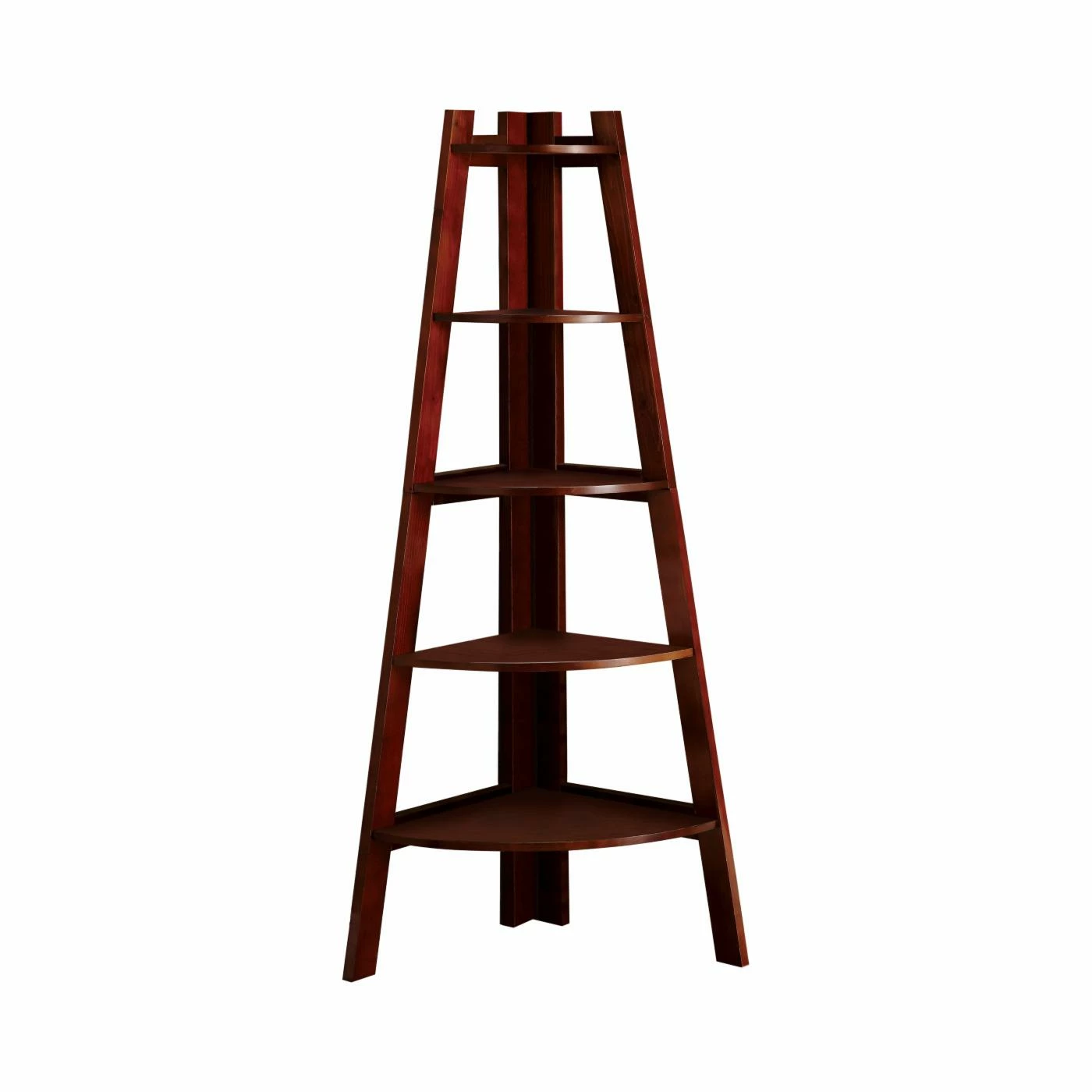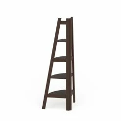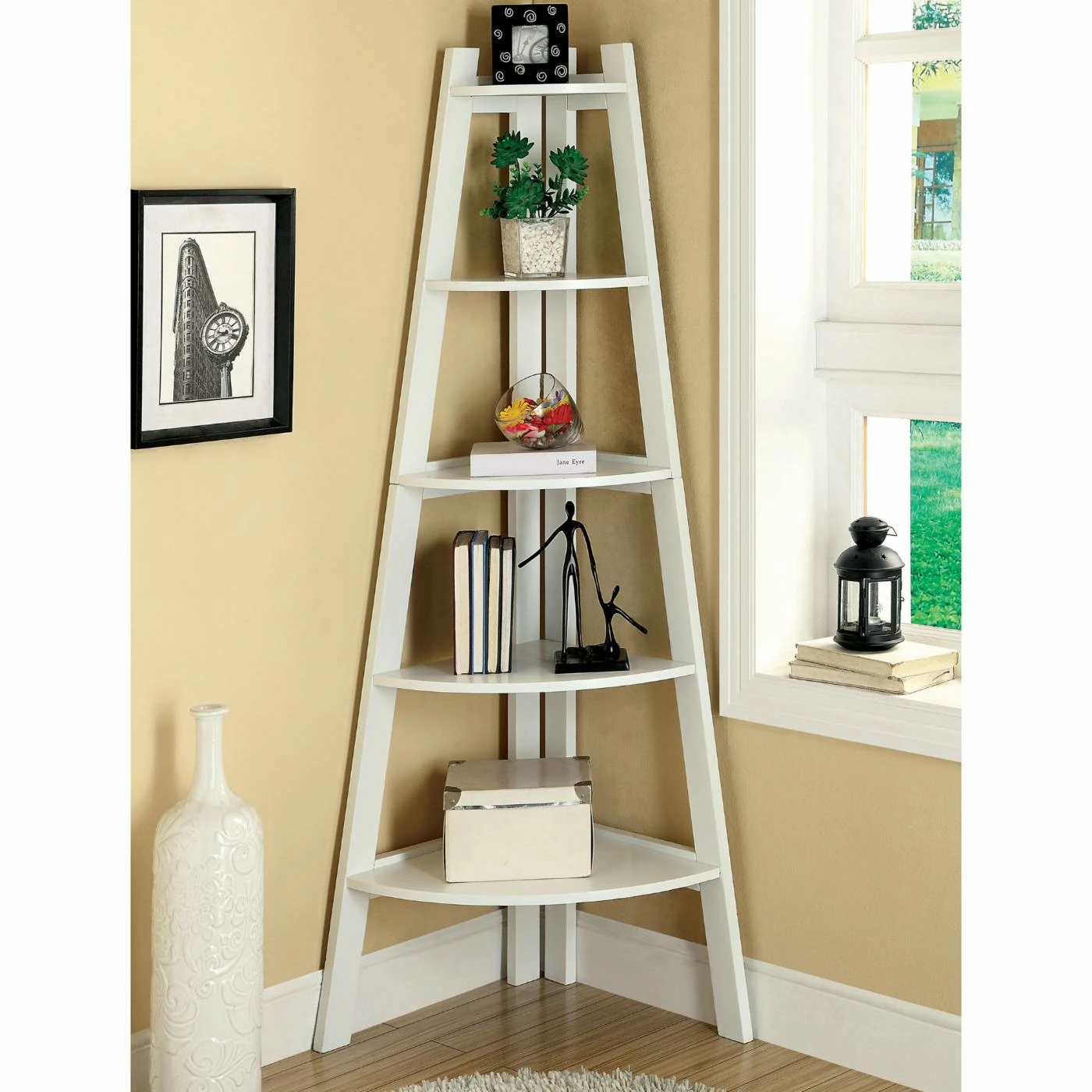 Snuggle this Furniture of America Merill 5-Tier Ladder Shelf into any corner to maximize space and create visual drama. This handsome ladder shelf is well-built of wood solids and veneers and finished in your choice of colors. Its five shelves are graduated in size and show off your favorites in style.