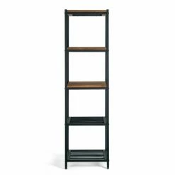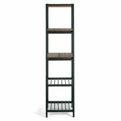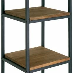Add industrial style and display space with the Glamour Home Ailis 57 in. Etagere Bookcase with Four Shelves. Its black metal framework includes two lower slatted shelves and two pine wood top two shelves. An open design makes this etagere perfect for showcasing things from all sides.