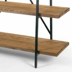 The industrial chic Glamour Home Ailis Leaning Etagere Bookcase features an open, black metal frame design. Its leaning look adds visual interest to any room. Five pine wood shelves provide plenty of display space and an open X-shaped back support keeps things in place.