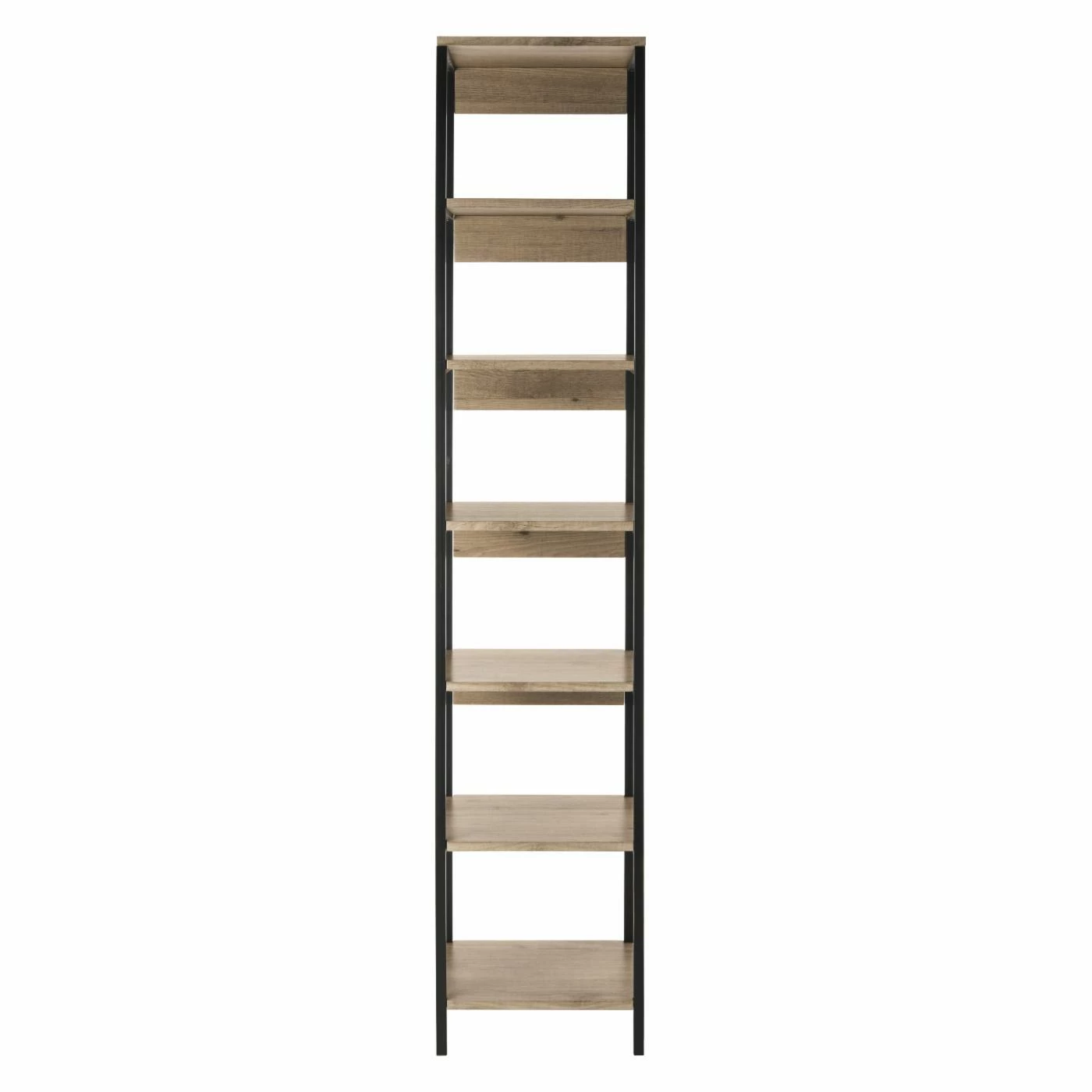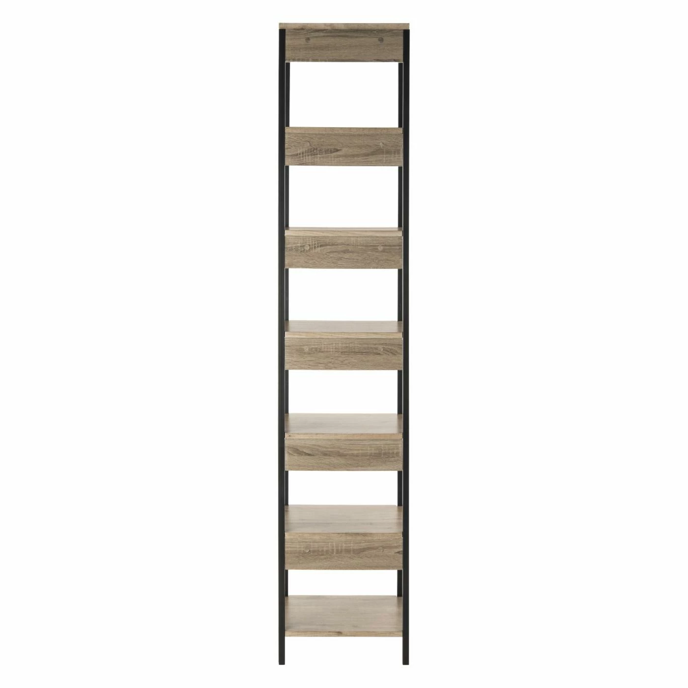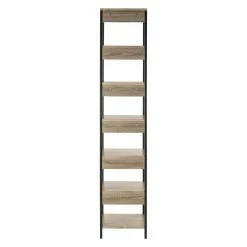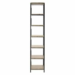 Ideal for smaller living spaces, the towering HN Home Osman Mid-Century Modern Retro 7 Tier Etagere offers plenty of display space and has a small footprint. This versatile etagere boasts seven oak-finished shelves. Its sleek black frame works well with a variety of interiors.