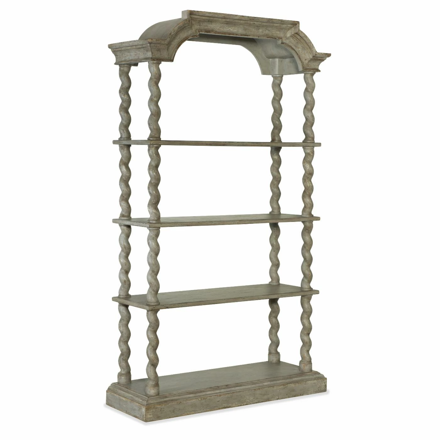 With the striking look of a treasured heirloom and an inviting casual oyster finish that appears lovingly aged, the Hooker Furniture Alfresco Lettore Etagere Bookcase – Oyster is worth building your room around. This bookcase features rope twist posts and an arched cornice top to offer an architectural pedigree. The 4 fixed shelves offer ample opened back storage.