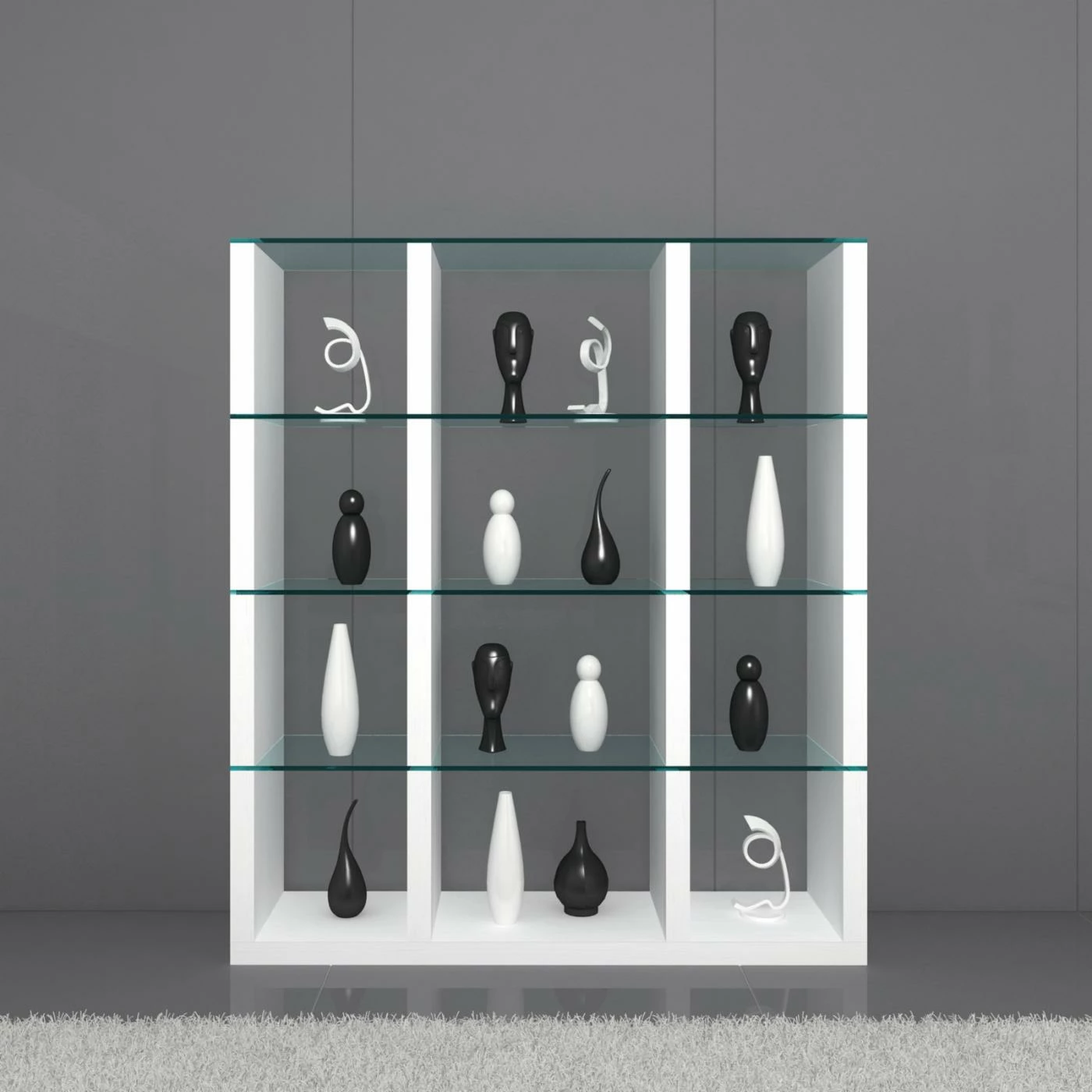 - High-gloss white finish