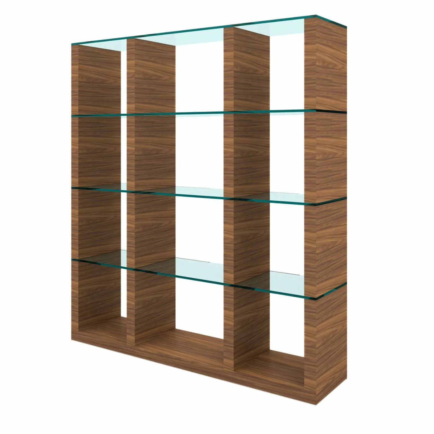 What will the neighbors say when your J&M Furniture CE Elm Wall Unit Bookcase goes up? Thereβs only one way to find out. Contemporary in fashion with old-fashioned attention to detail, this bookcase features horizontal shelf surfaces of tempered glass. The vertical pillars are thick, sturdy beams of premium wood with walnut veneers. Lines are sleek and ultra-modern, setting the scene for you to create an impressive display with your favorite books and objects dβart. A matching dining set and curio are available separately.