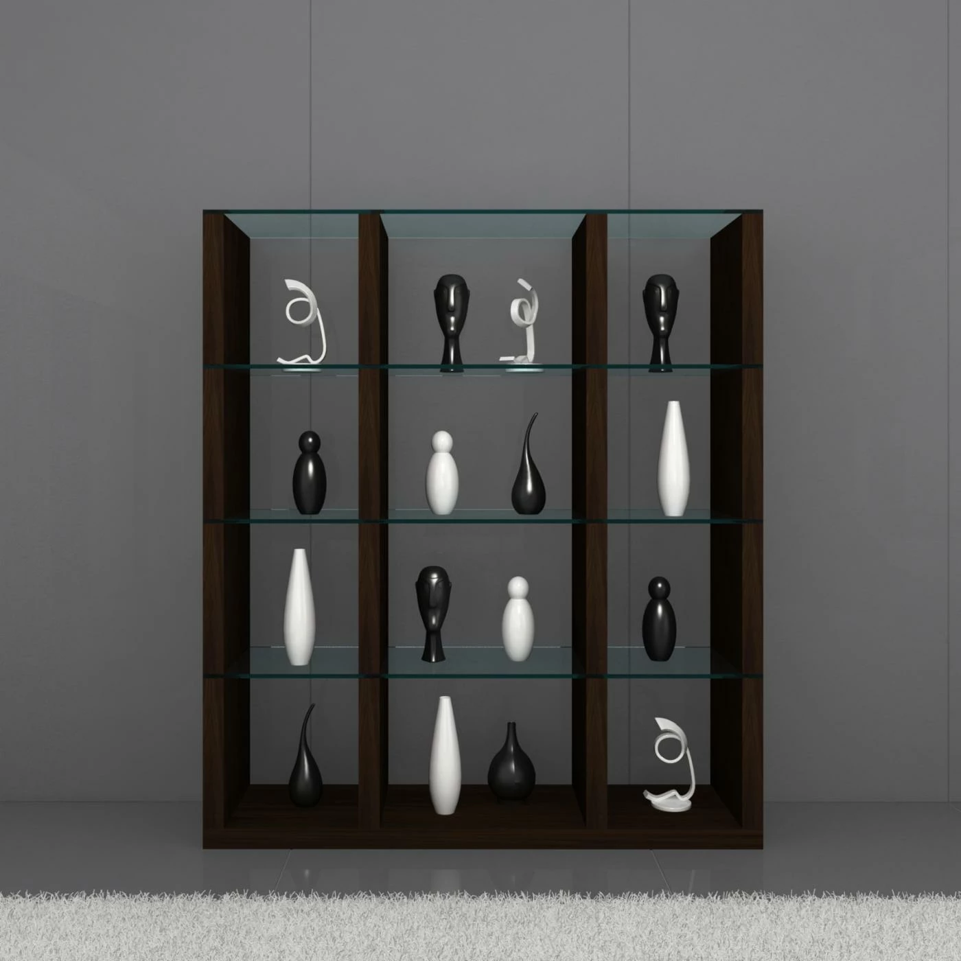 Float your favorite things within the open-backed J&M Furniture CE Float Wall Unit Bookcase and enliven any space. With its sleek lines, this bookcase embodies ultra-modern design principles. Unobtrusive and designed to show off its contents, this bookcase is made with thick planks of wood dressed in hand-selected oak veneers. A luxe dark espresso finish ties in with other furnishings and architectural features. Thick tempered glass shelves allow your sculptures and treasured objects to weightlessly dwell in midair.