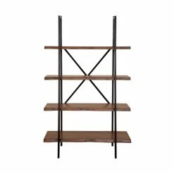 Add storage and style to your home with the Alpine Furniture Live Edge 4 Shelf Bookshelf. This open-back shelf has a metal frame in a sleek black finish. The wood shelves are in a walnut finish, and the shelves each have a natural edge that lends a rustic touch to the piece. A combination of natural and industrial style, this bookshelf works with a variety of home dΓ©cor styles. Use it to store your favorite books, or style the bookshelf with houseplants, coffee table books, and more.