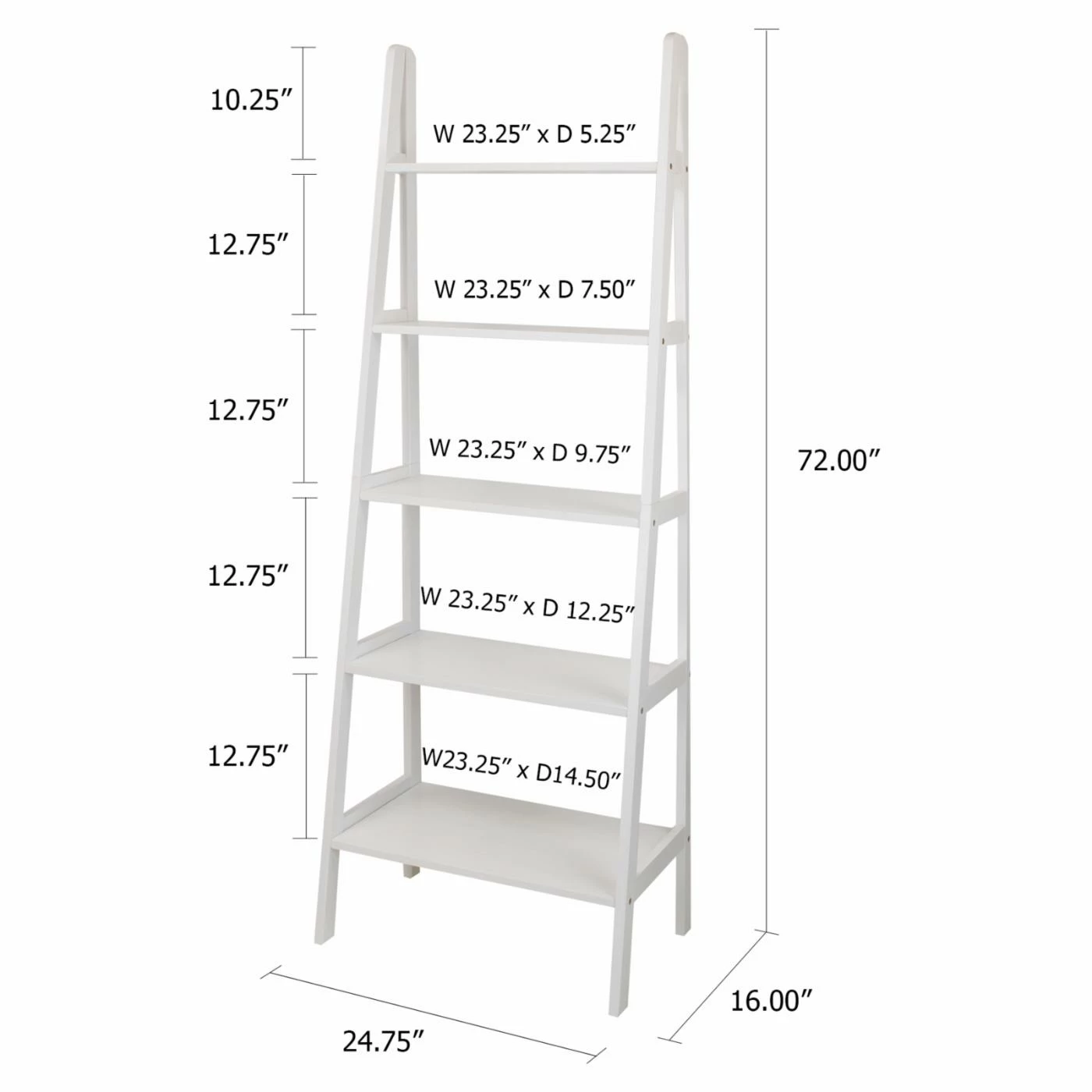 The unique aesthetic energy of the Casual Home 5-Shelf Ladder Bookcase is sure to transform any interior space you style it in. It’s carefully crafted with 100% solid wood, and customizable in warm brown or white finish options, so you can best complement your interior style. This tapered, wide-base ladder bookcase features five spacious shelves that are great for displaying books, dΓ©cor favorites, collectables, and other essentials, providing you a versatile storage option while taking up minimal space.